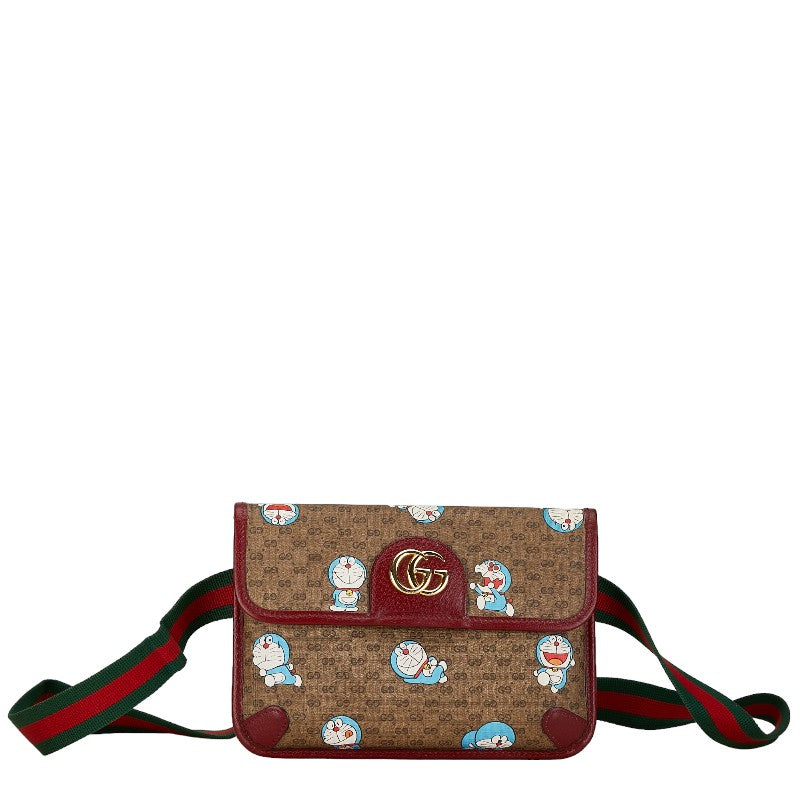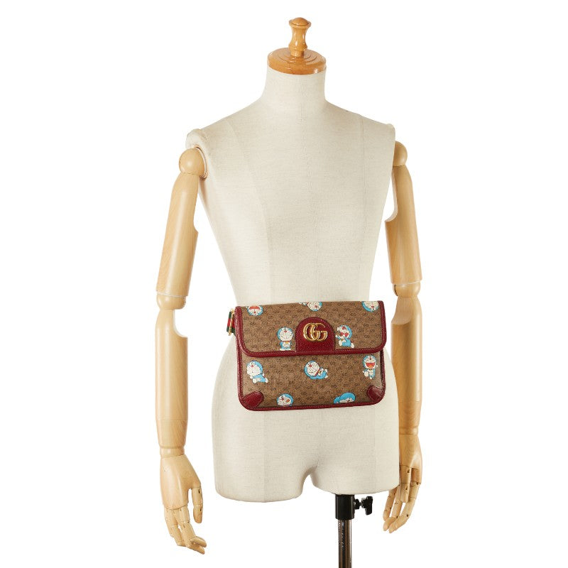 グッチ GGスプリーム ドラえもん ボディバッグ ウエストポーチ 6457817 チェリーレッド ベージュ PVC レザー レディース GUCCI 【中古】