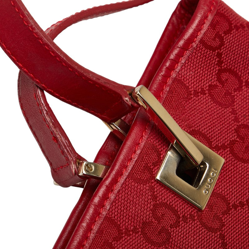 グッチ GGキャンバス ハンドバッグ トートバッグ 002214 レッド ゴールド キャンバス レザー レディース GUCCI 【中古】