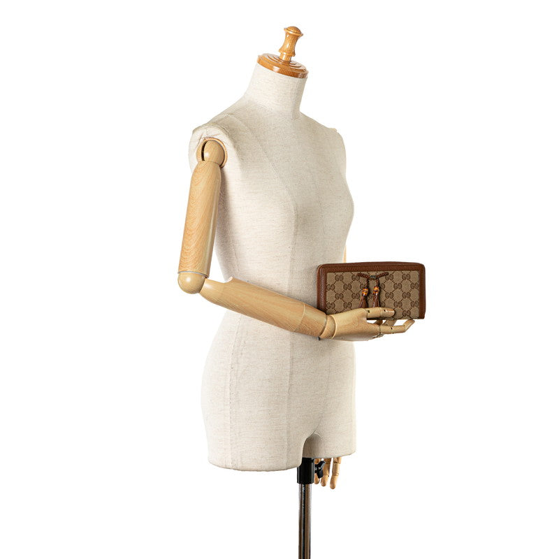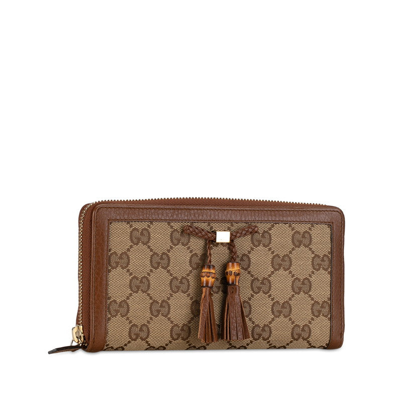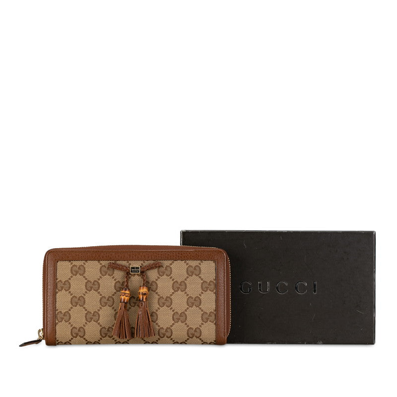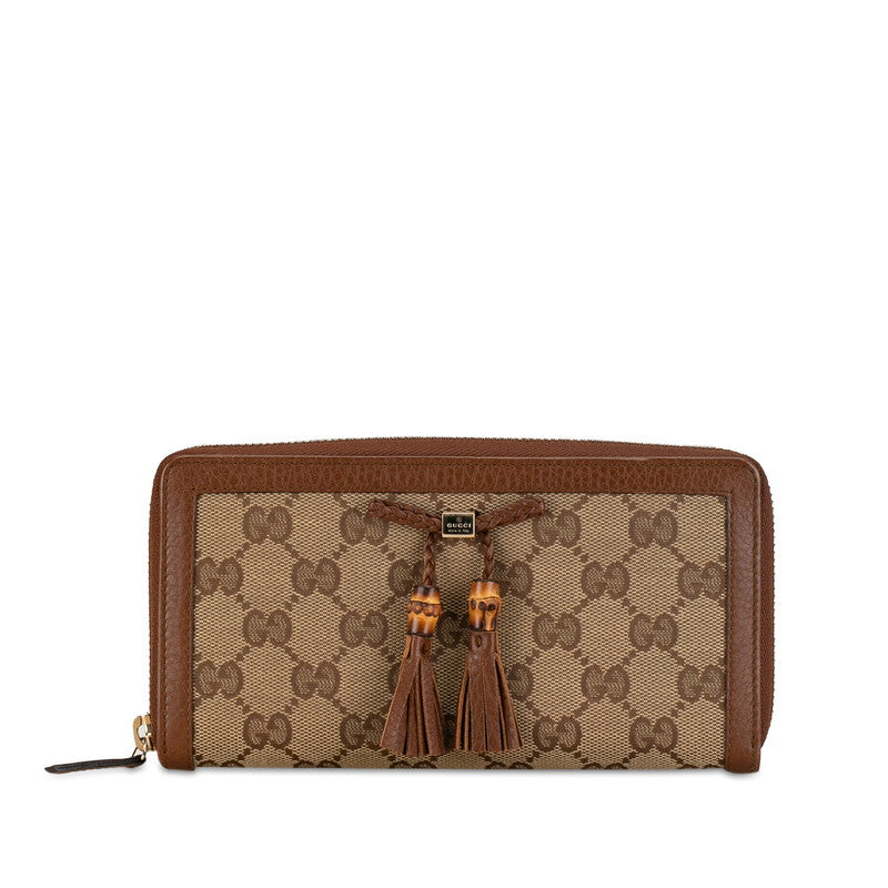 グッチ GGキャンバス バンブー タッセル ラウンドファスナー 長財布 269991 ブラウン ベージュ キャンバス レザー レディース GUCCI 【中古】