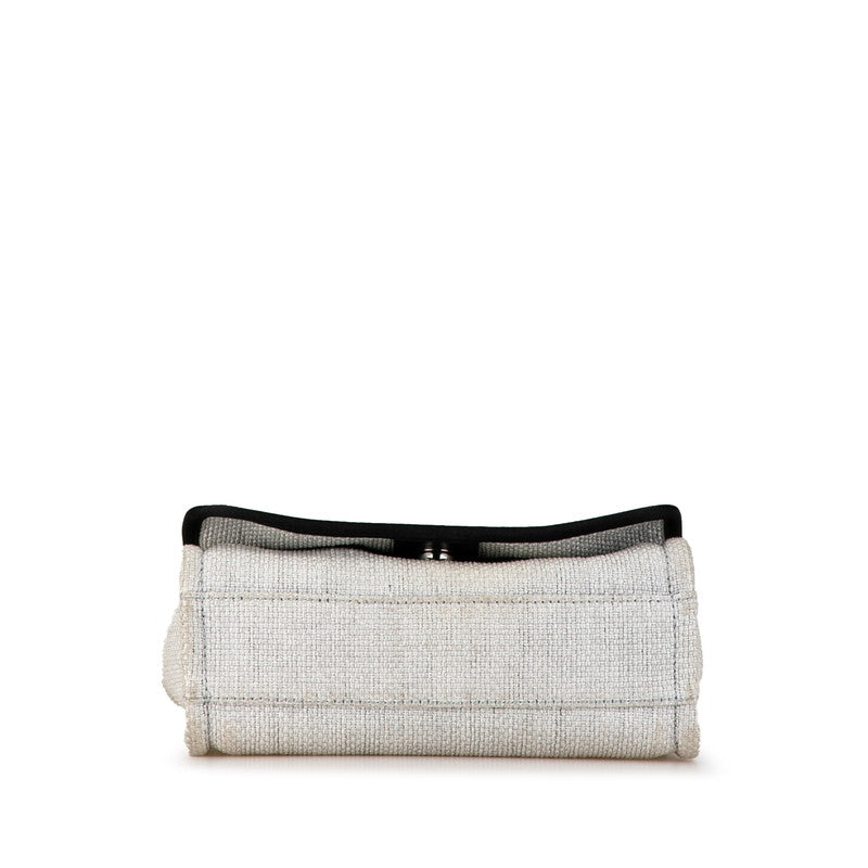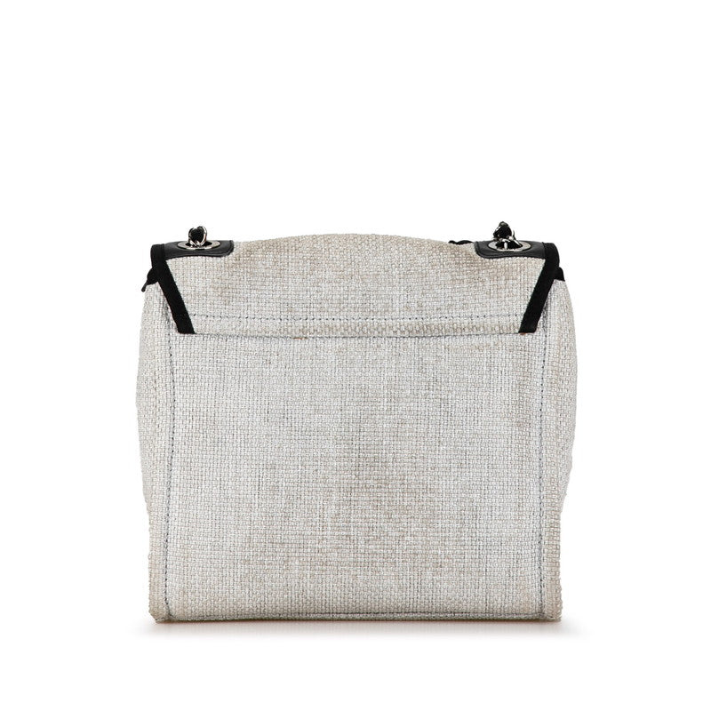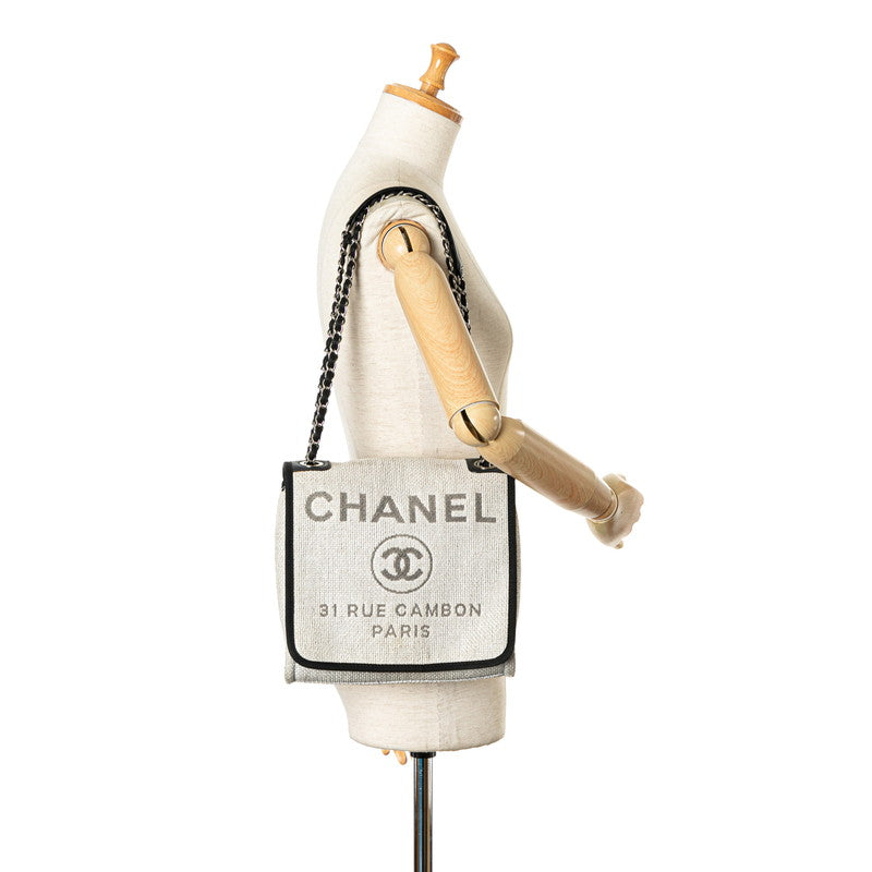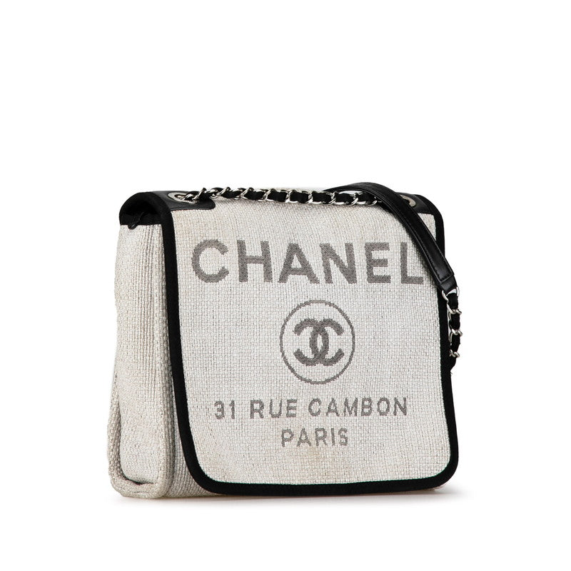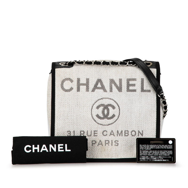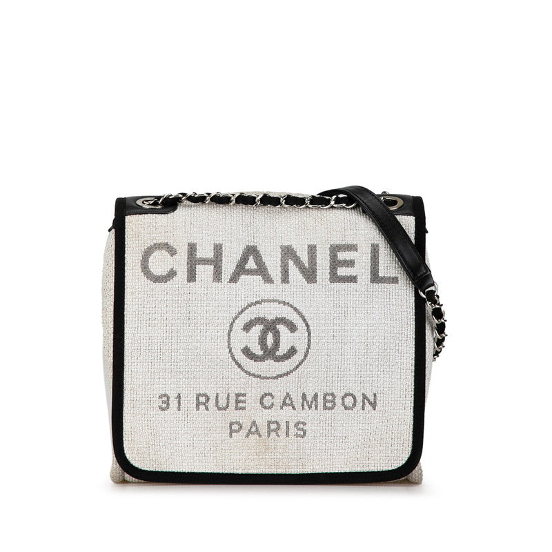 シャネル ココマーク ロゴ ドーヴィル チェーン トートバッグ ショルダーバッグ ホワイト ブラック キャンバス レザー レディース CHANEL 【中古】
