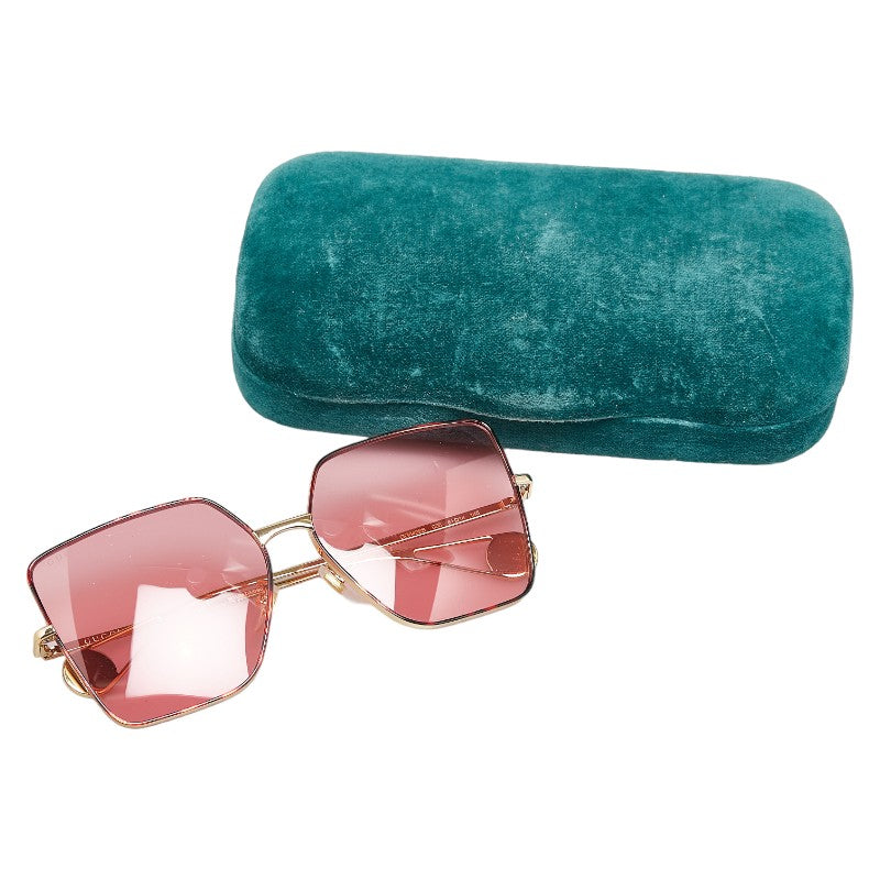 グッチ GGロゴ サングラス GG0436S 005 レッド ゴールド メッキ プラスチック メンズ GUCCI 【中古】