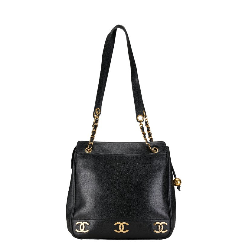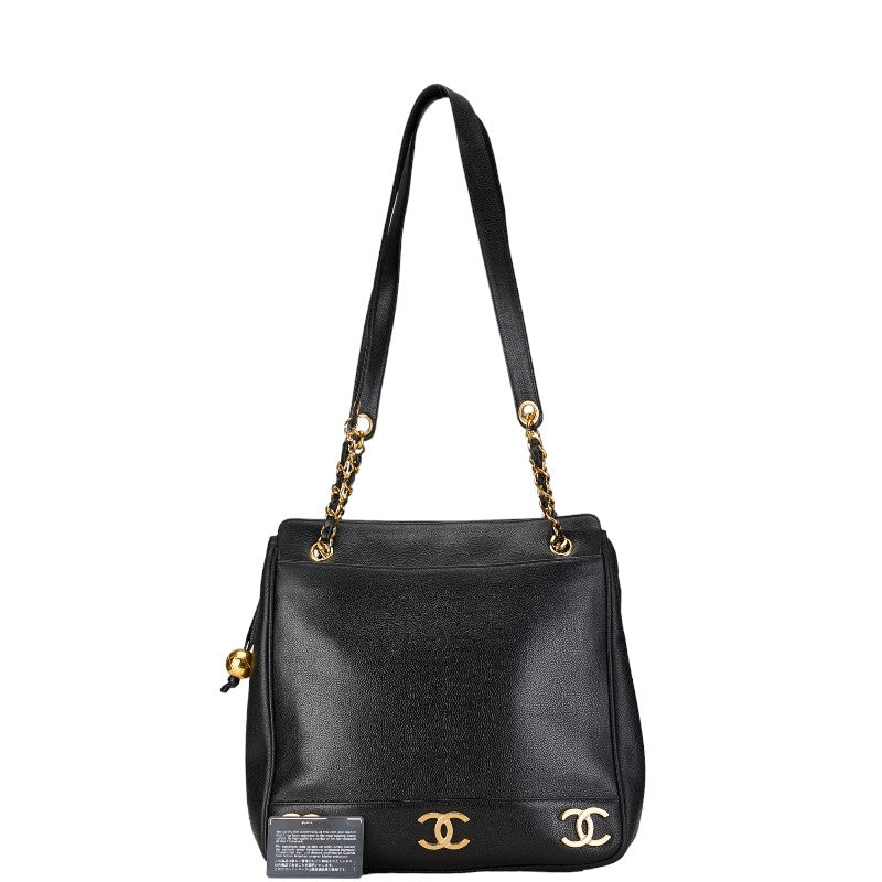 シャネル ココマーク ボール トートバッグ ハンドバッグ ブラック ゴールド レザー レディース CHANEL 【中古】