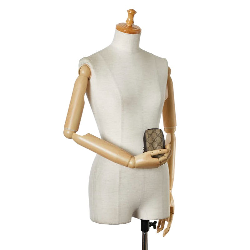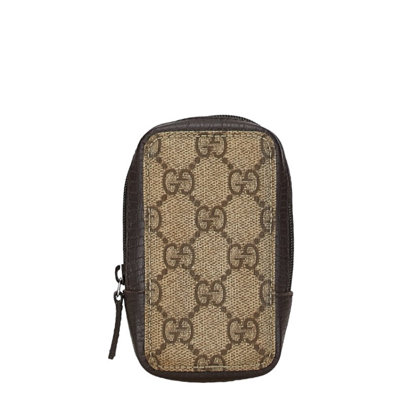 グッチ GGスプリーム ポーチ シガレットケース 115262 ベージュ ブラウン PVC レザー レディース GUCCI 【中古】