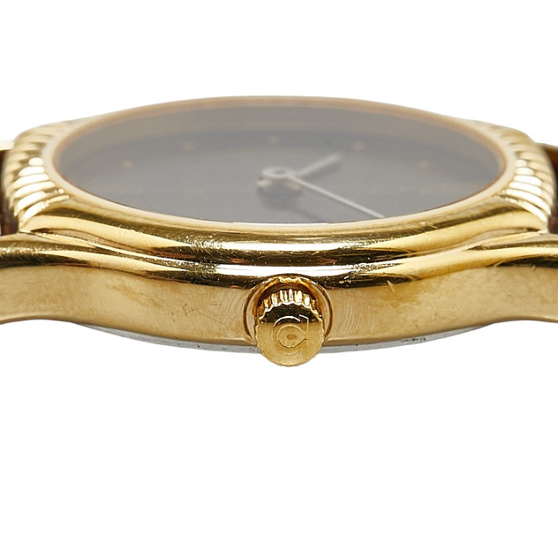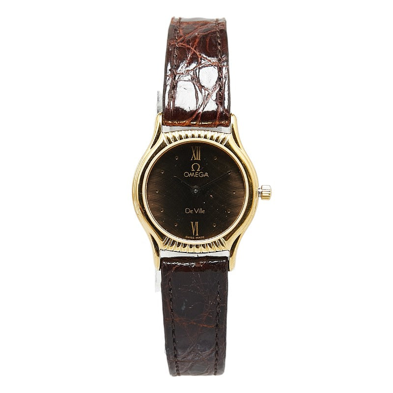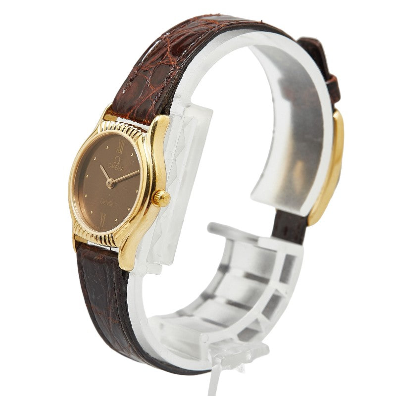 オメガ DE VILLE デビル 腕時計 クオーツ ブラウン文字盤 ステンレススチール レザー レディース OMEGA 【中古】