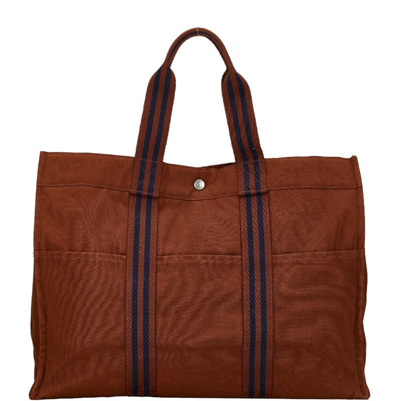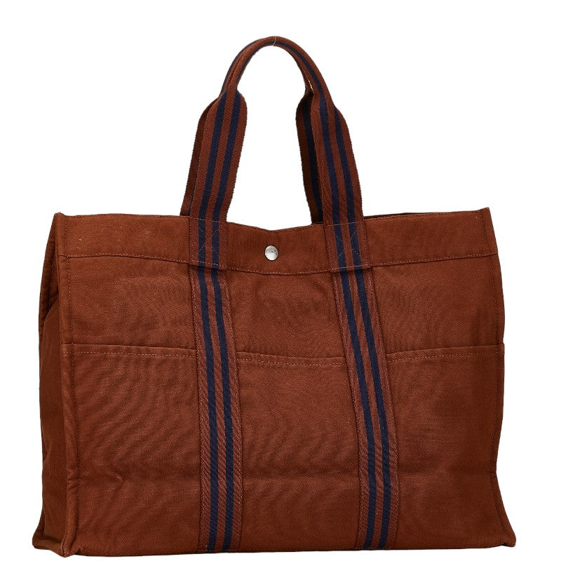エルメス フールトゥMM ハンドバッグ トートバッグ ブラウン ブルー キャンバス レディース HERMES 【中古】