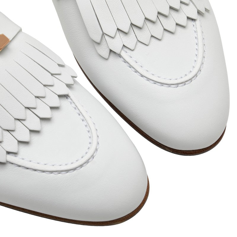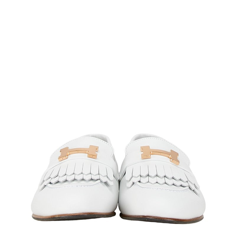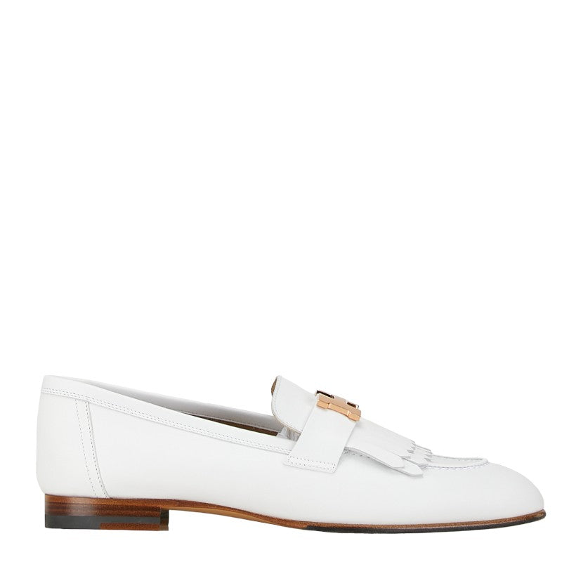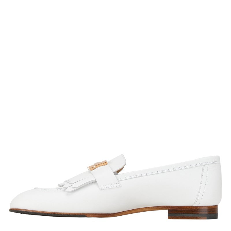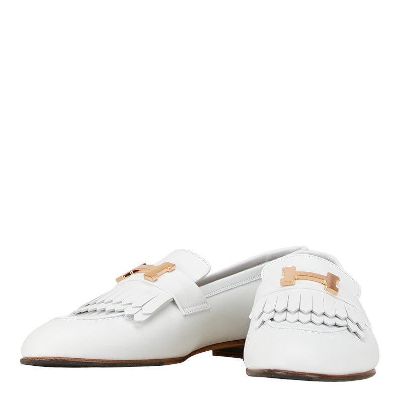 エルメス ロワイヤル H シューズ サイズ:38 1/2 ホワイト ゴールド レザー レディース HERMES 【中古】