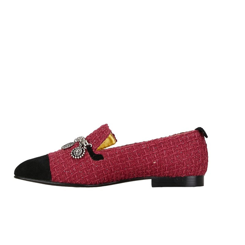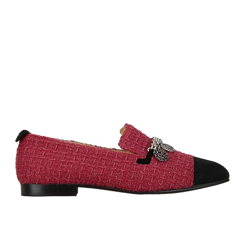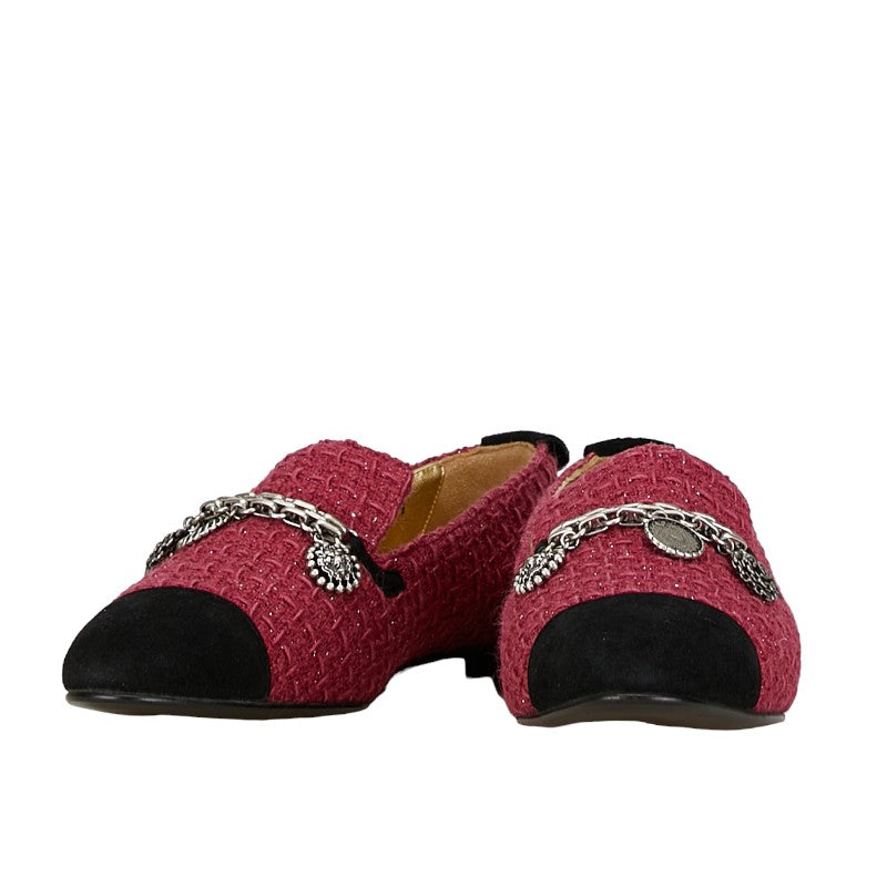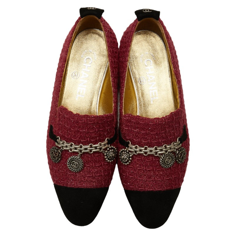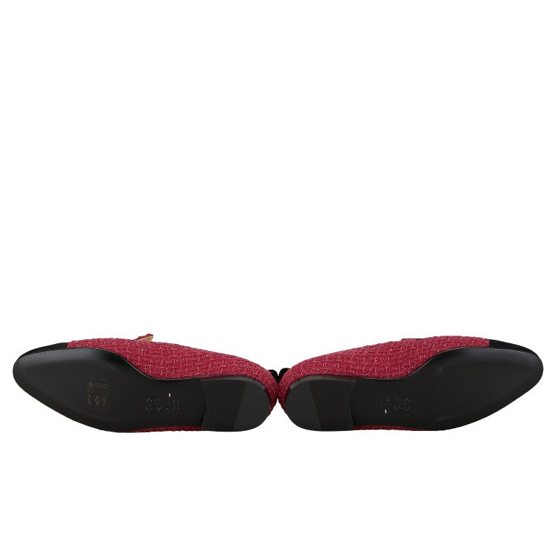 シャネル ココマーク チェーン ローファー サイズ:36C ピンク ブラック ツイード レディース CHANEL 【中古】