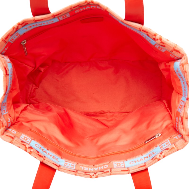 シャネル ニュートラベルライン トートMM ハンドバッグ トートバッグ レッド ナイロン レザー レディース CHANEL 【中古】