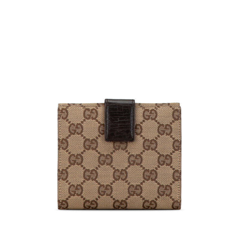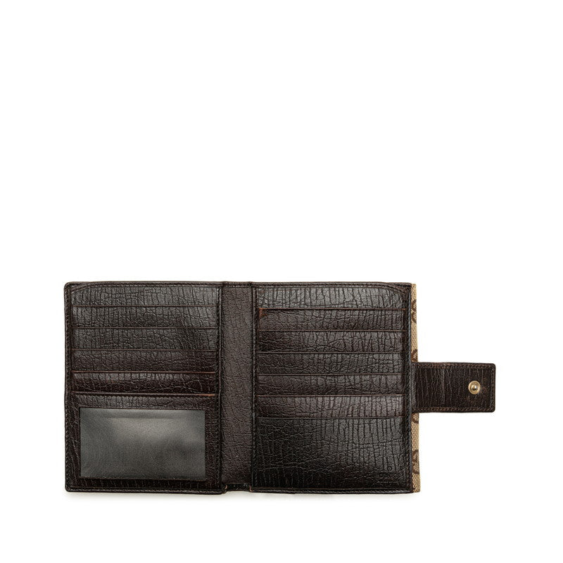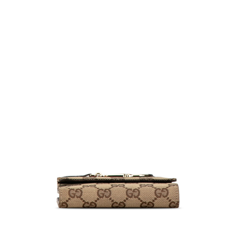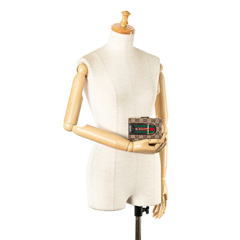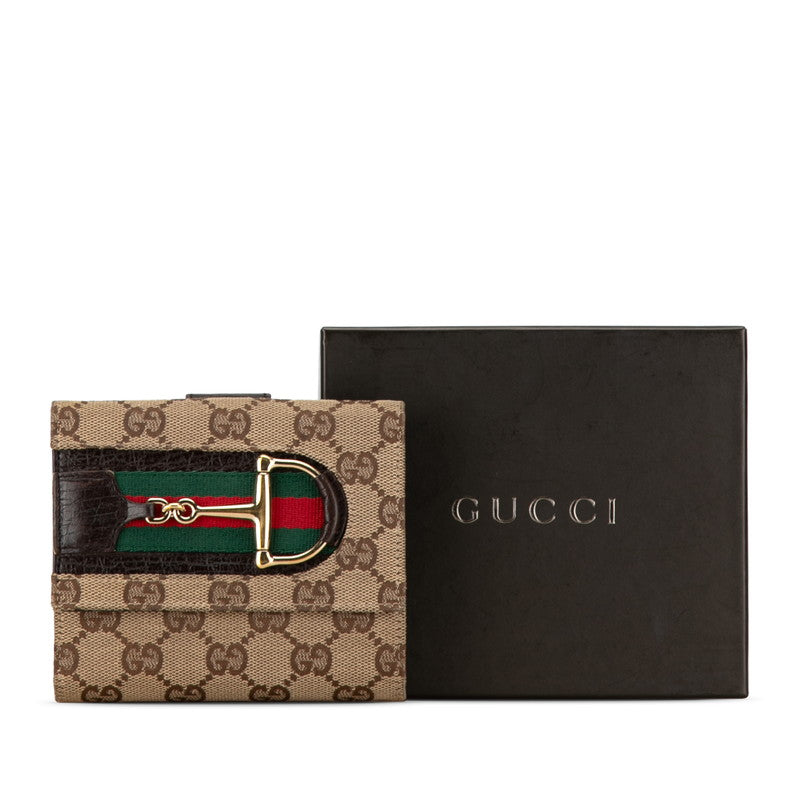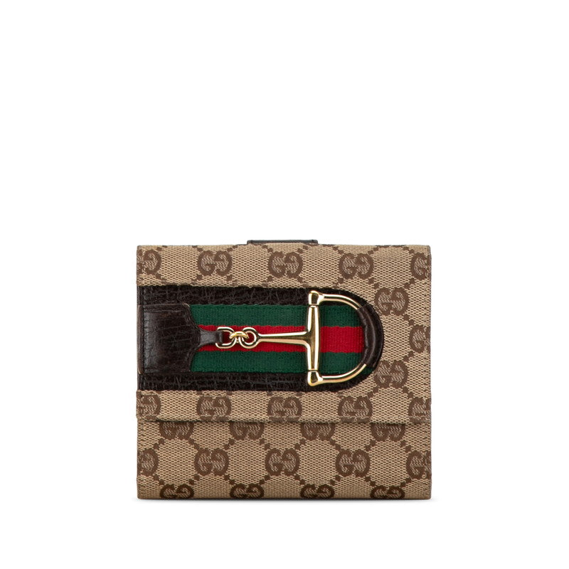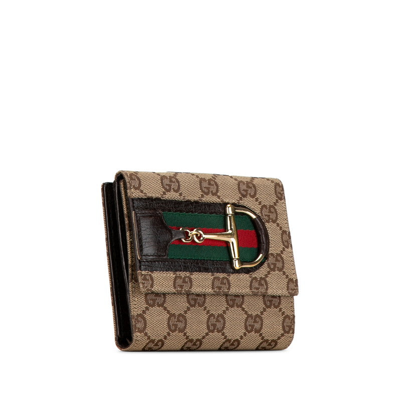 グッチ GGキャンバス ホースビット シェリー 二つ折り財布 コンパクトウォレット 138031 ブラウン キャンバス レザー レディース GUCCI 【中古】