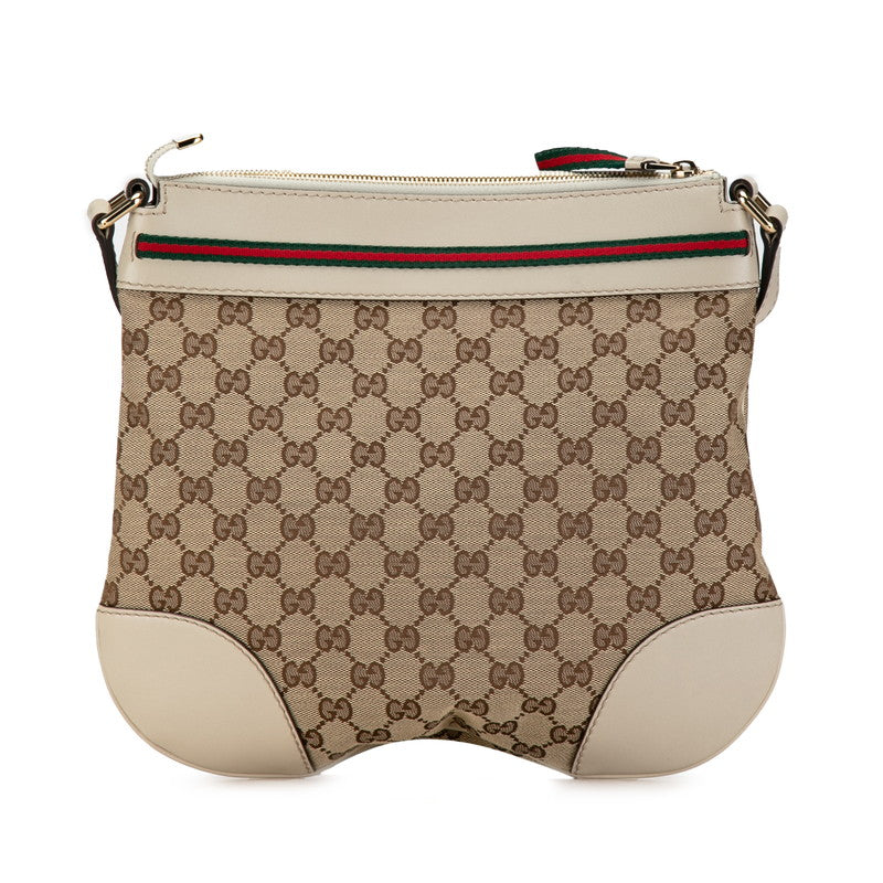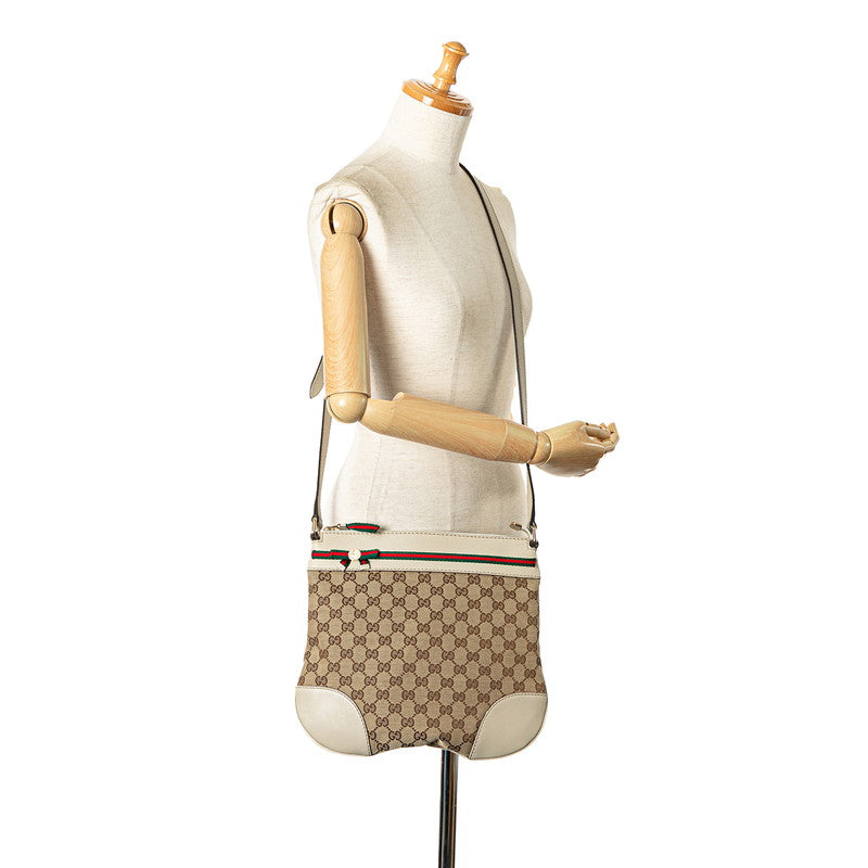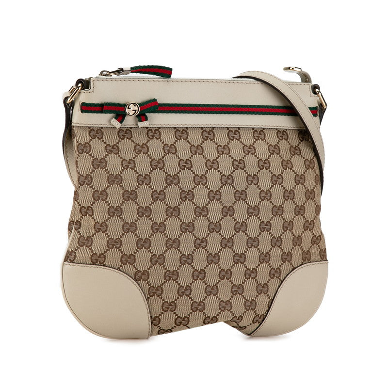 グッチ GGキャンバス プリンシー シェリーライン 斜め掛け ショルダーバッグ 257065 ベージュ ホワイト キャンバス レザー レディース GUCCI 【中古】