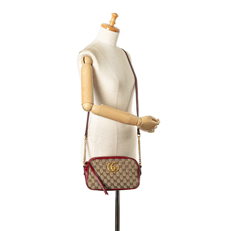 グッチ GGマーモント GGキャンバス スモール 斜め掛け ショルダーバッグ 447632 レッド ベージュ キャンバス レザー レディース GUCCI 【中古】