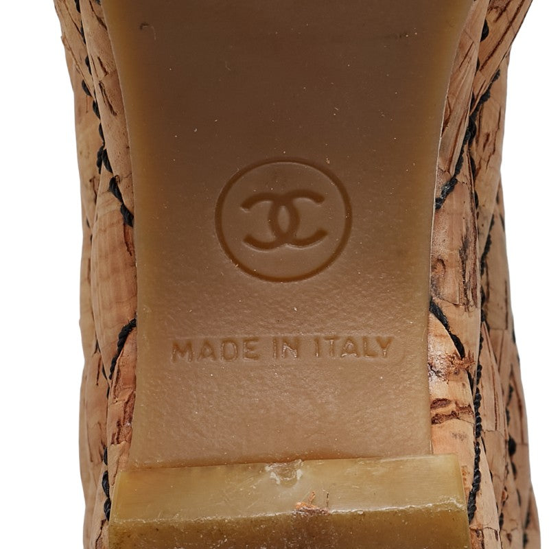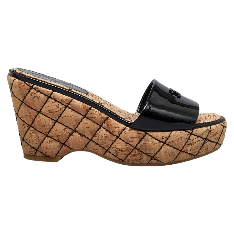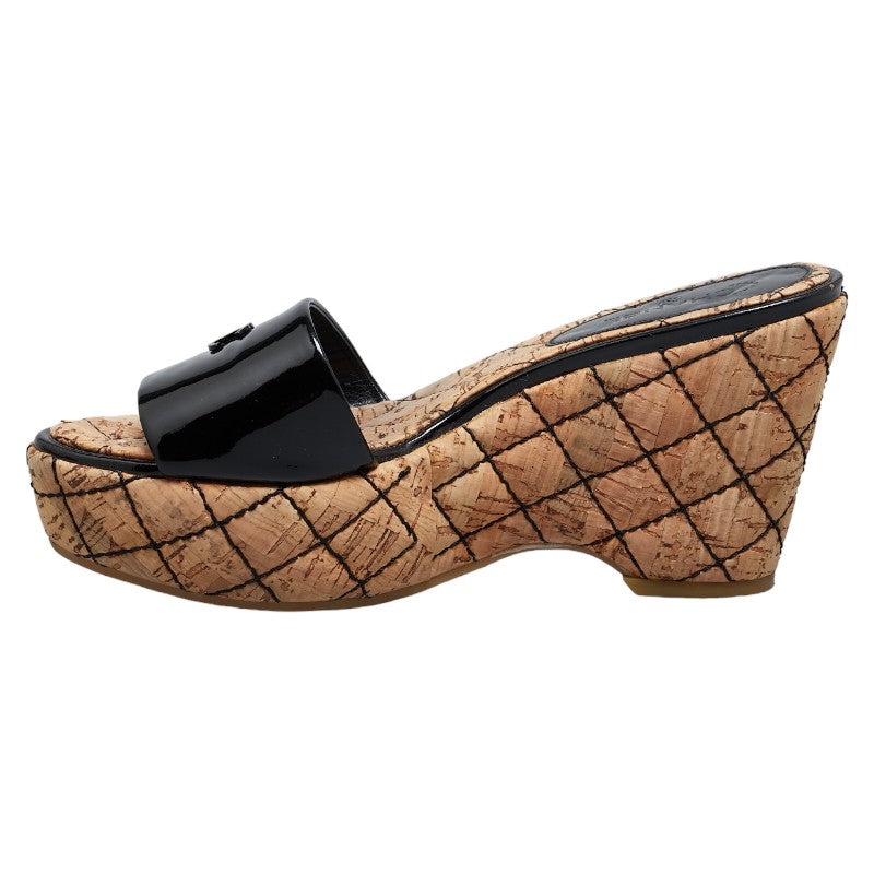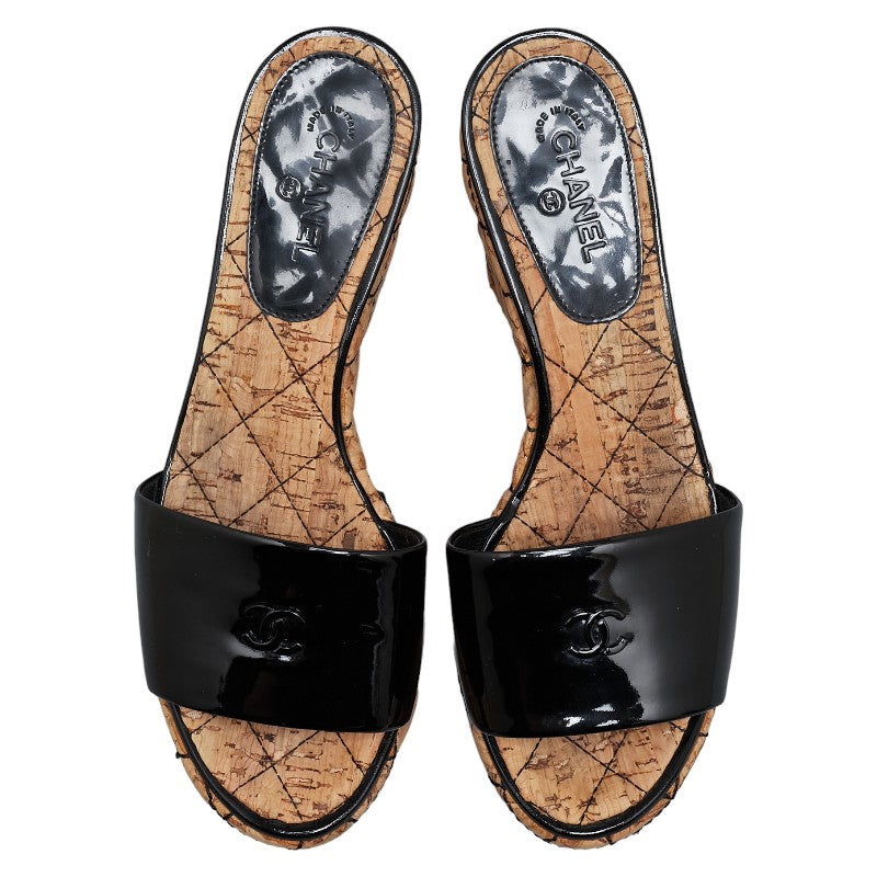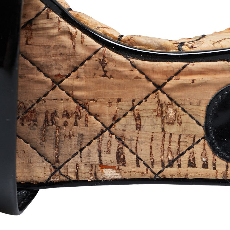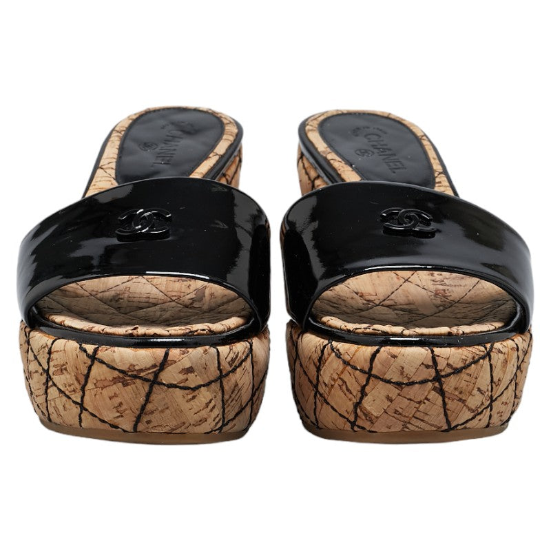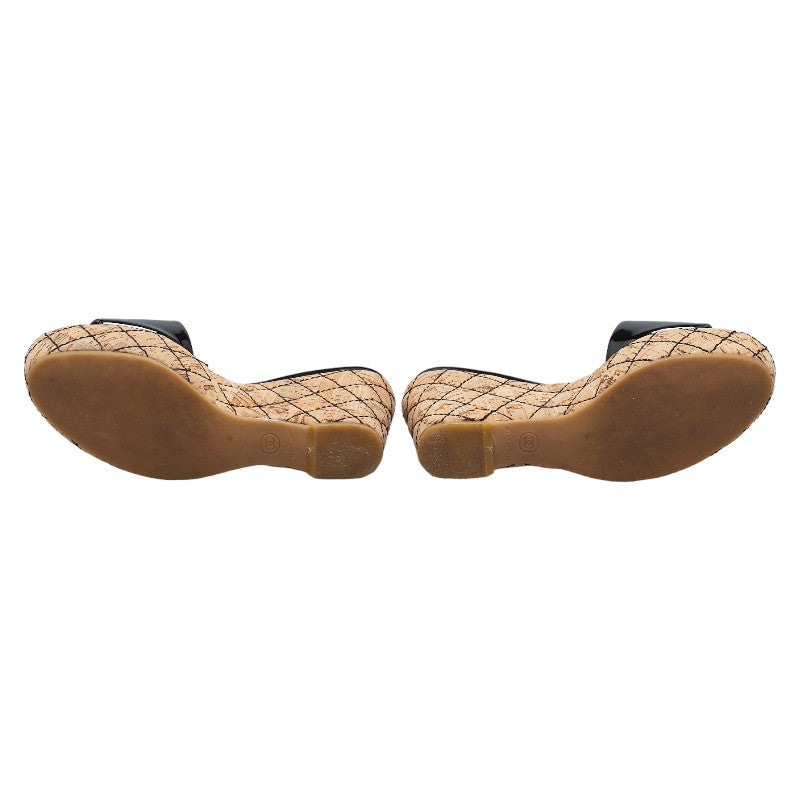 シャネル ココマーク マトラッセ ウェッジソール サンダル ブラック ベージュ エナメル レディース CHANEL 【中古】