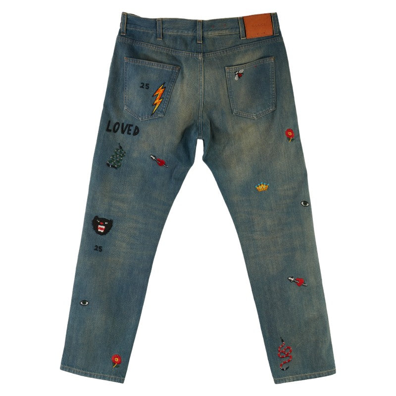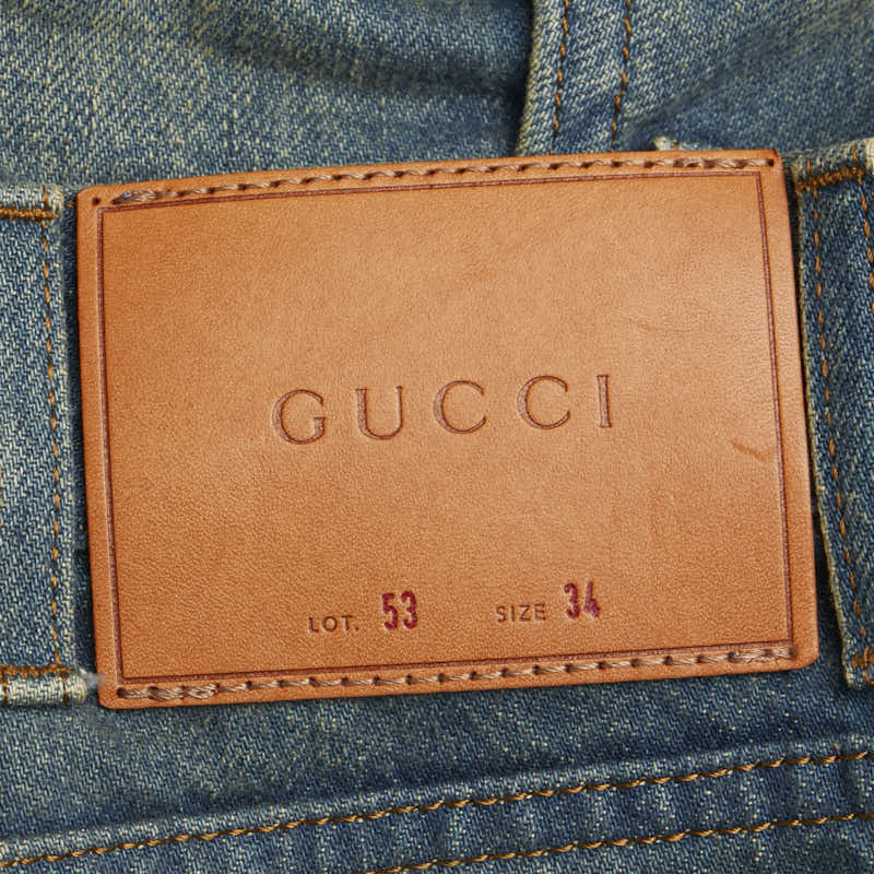 グッチ XD836 シンボルテーパード デニムパンツ 408637 ライトブルー マルチカラー コットン レディース GUCCI 【中古】