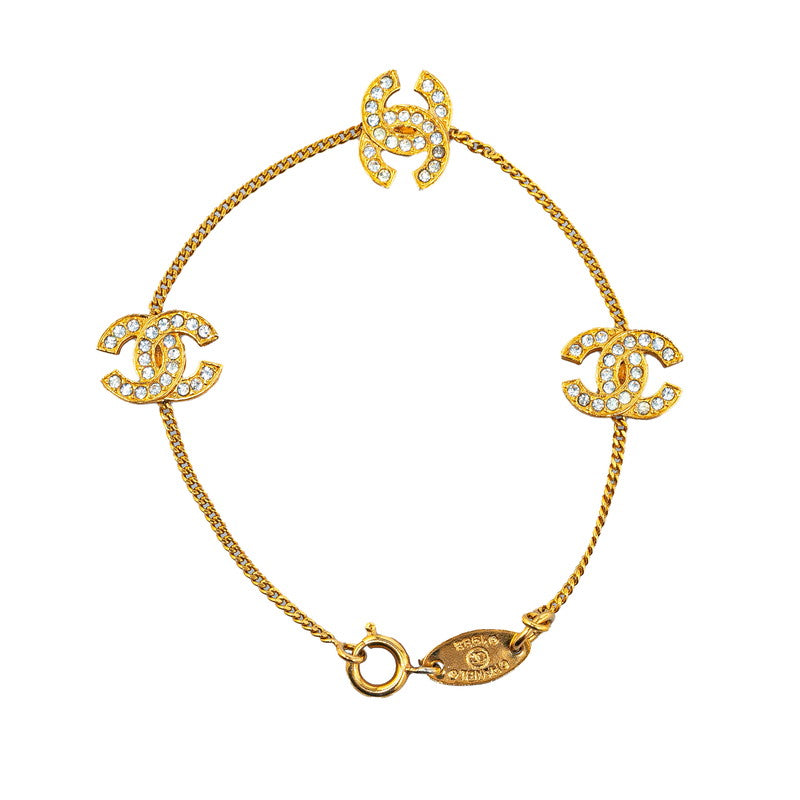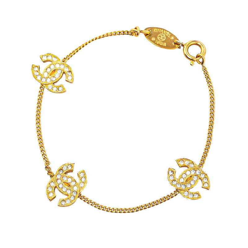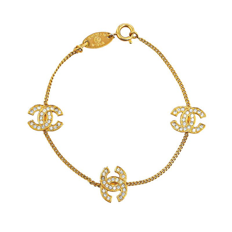 シャネル ココマーク ラインストーン ブレスレット ゴールド メッキ レディース CHANEL 【中古】