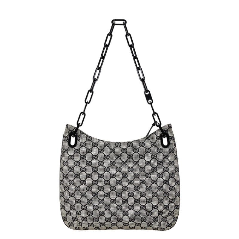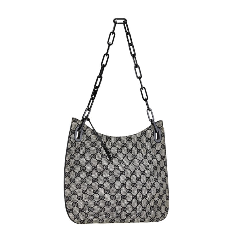 グッチ GGキャンバス チェーン ショルダーバッグ 001 4168 200047 ブラック ベージュ キャンバス プラスチック レディース GUCCI 【中古】
