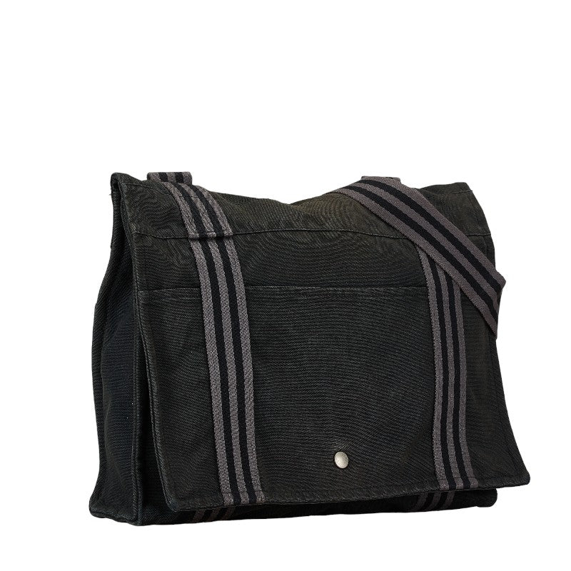 エルメス フールトゥ バサスMM 斜め掛けショルダー メッセンジャーバッグ ブラック キャンバス レディース HERMES 【中古】