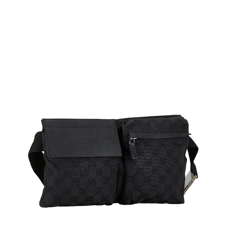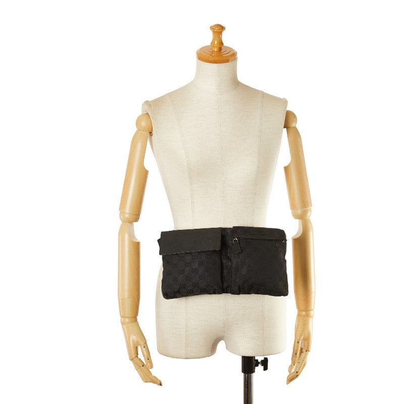 グッチ GGキャンバス ボディバッグ ウエストバッグ 28566 ブラック キャンバス レザー レディース GUCCI 【中古】