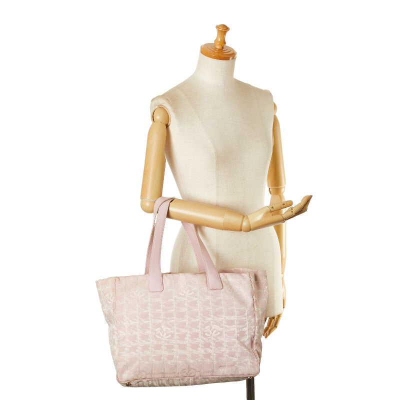 シャネル ニュートラベルライン トートMM ハンドバッグ トートバッグ A15991 ピンク ナイロン レザー レディース CHANEL 【中古】