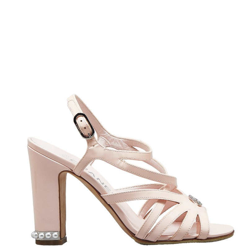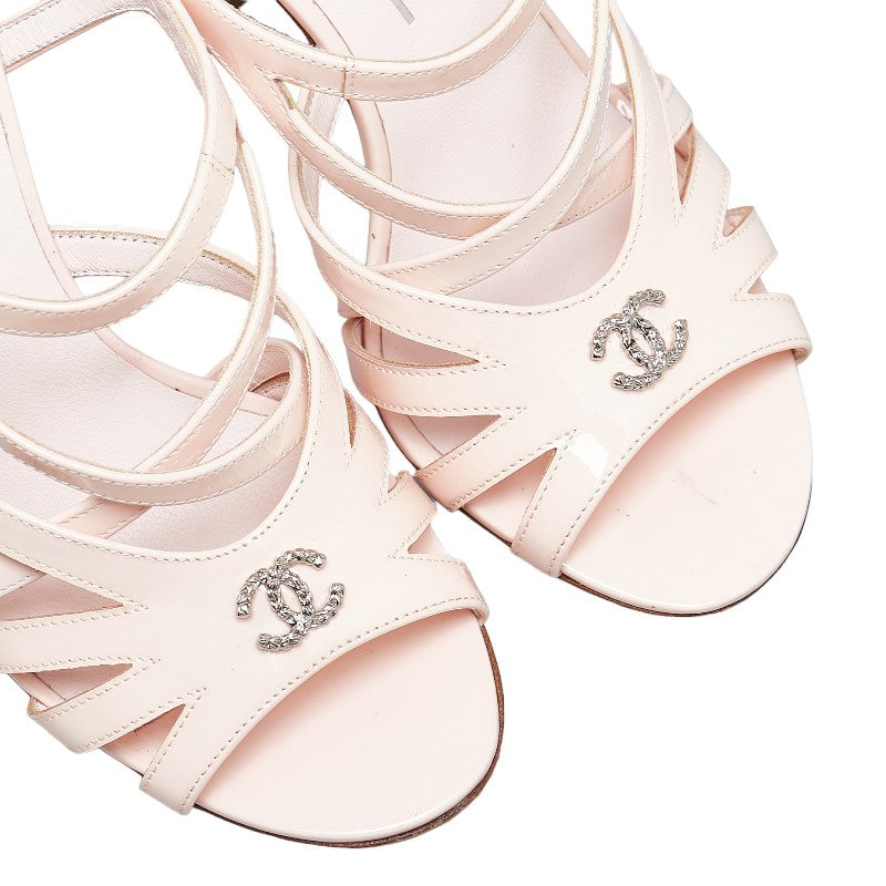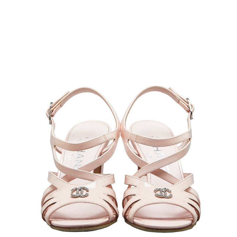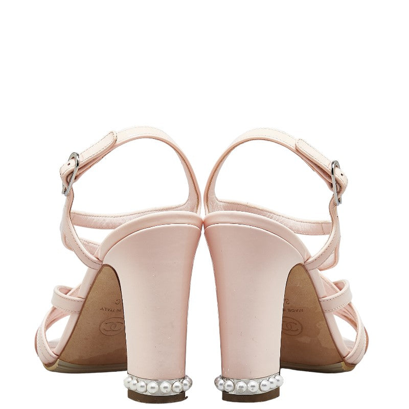 シャネル ココマーク フェイクパール サンダル ピンク エナメル レザー レディース CHANEL 【中古】