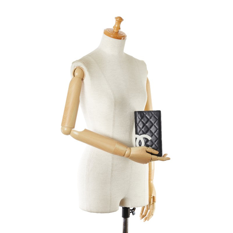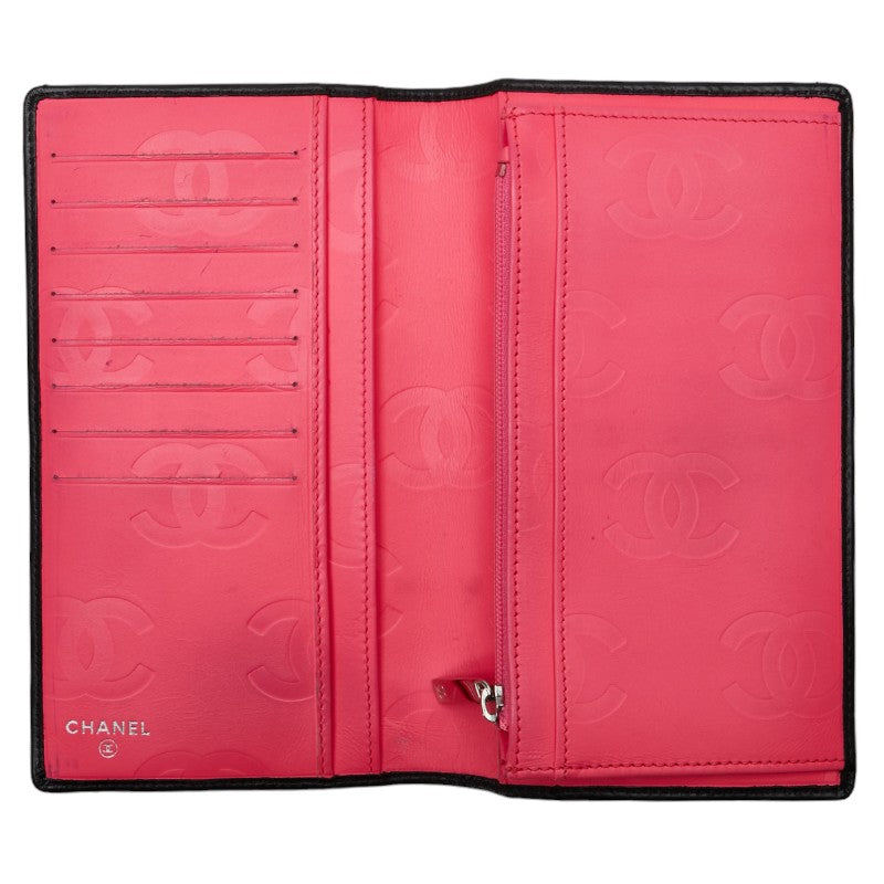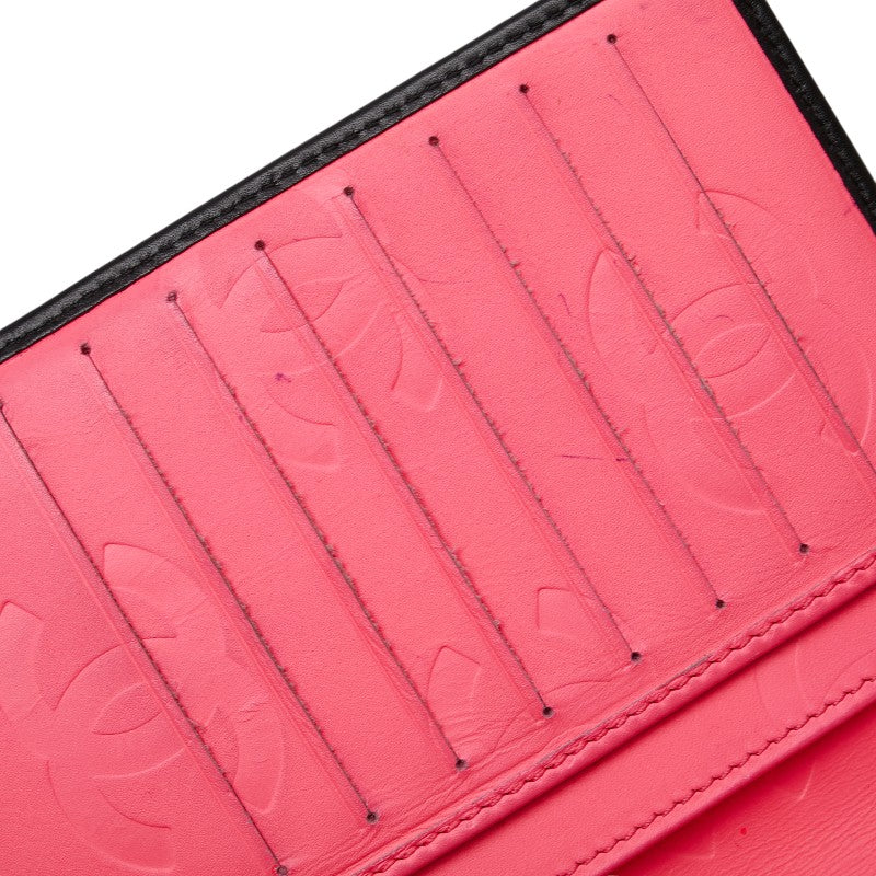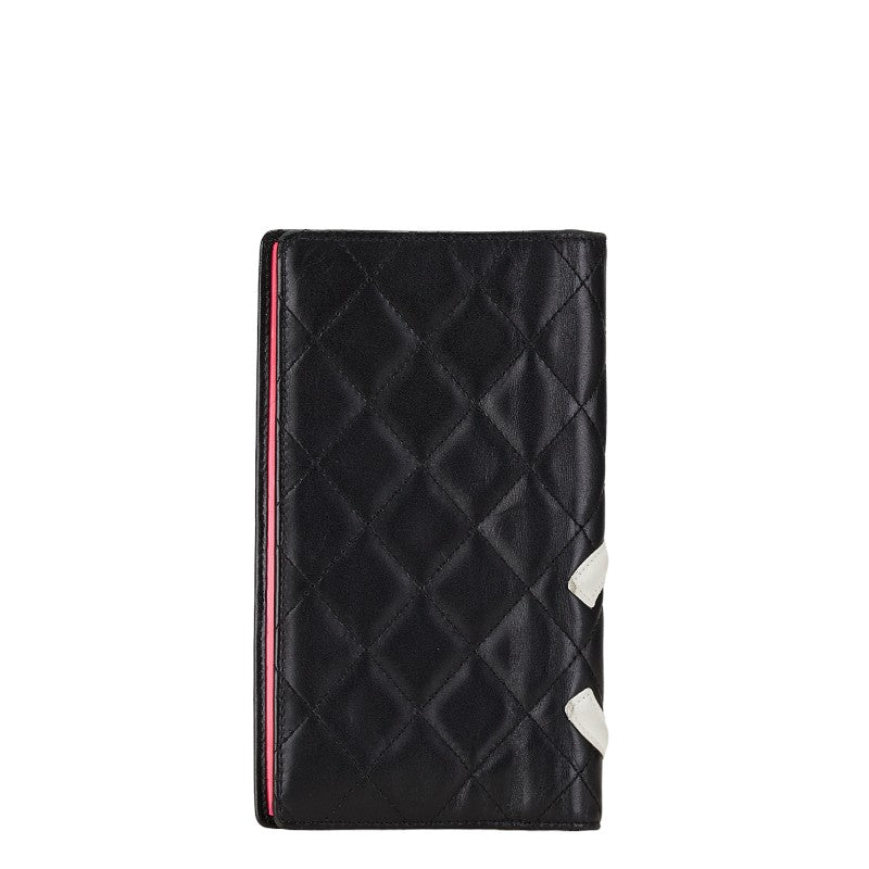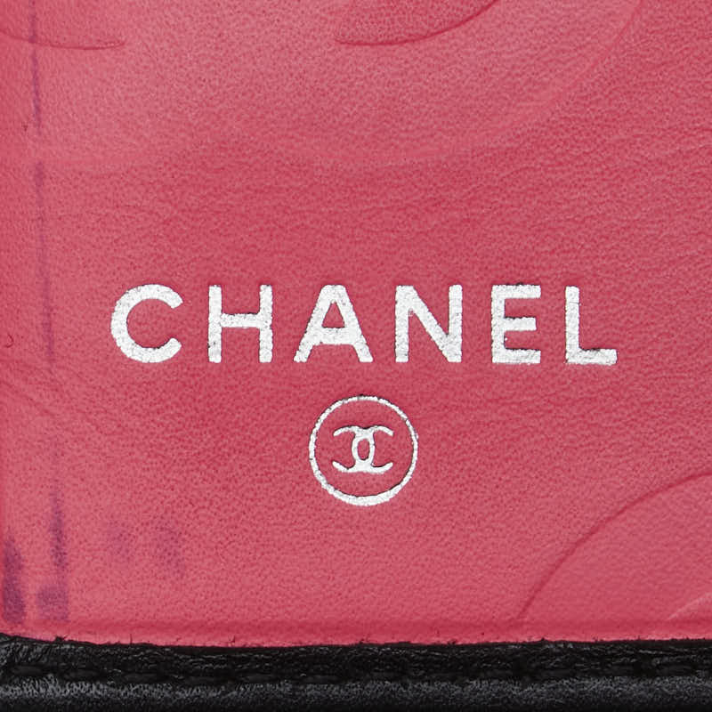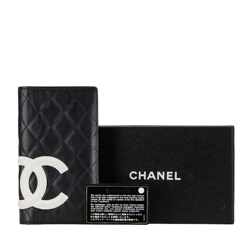 シャネル カンボンライン ココマーク 二つ折り財布 ブラック ホワイト レザー レディース CHANEL 【中古】