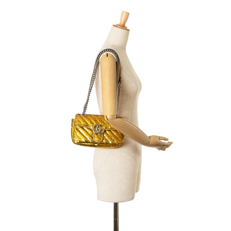 グッチ GGマーモント チェーン ショルダーバッグ 446744 イエロー スパンコール レザー レディース GUCCI 【中古】