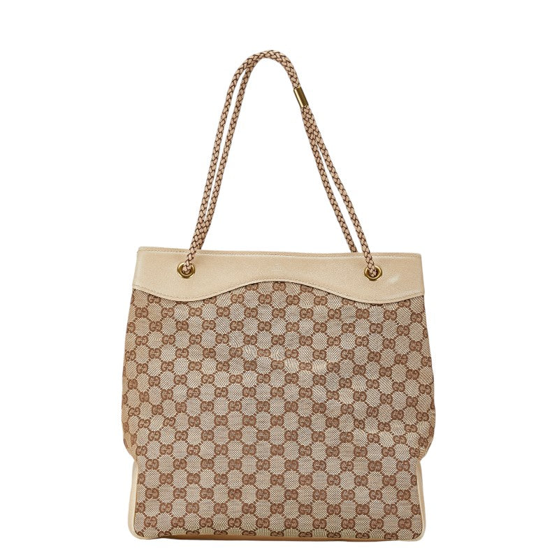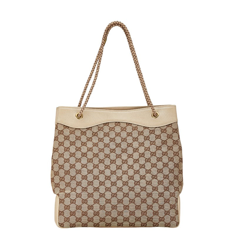 グッチ GGキャンバス トートバッグ ハンドバッグ 109141 ベージュ アイボリー キャンバス レザー レディース GUCCI 【中古】