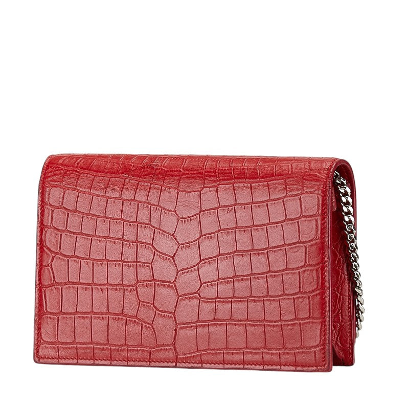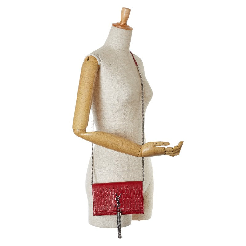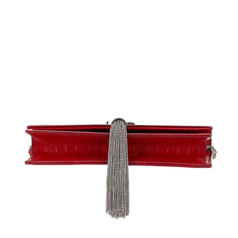 サンローラン KATE ケイト クロコ型押し タッセル 斜め掛け チェーン ショルダーバッグ ウォレット 452159 レッド レザー レディース SAINT LAURENT 【中古】