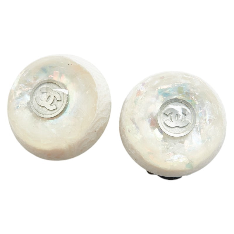 シャネル ココマーク イヤリング シルバー ホワイト プラスチック メタル レディース CHANEL 【中古】