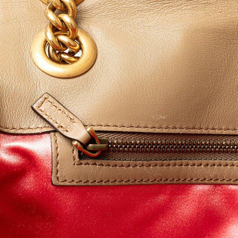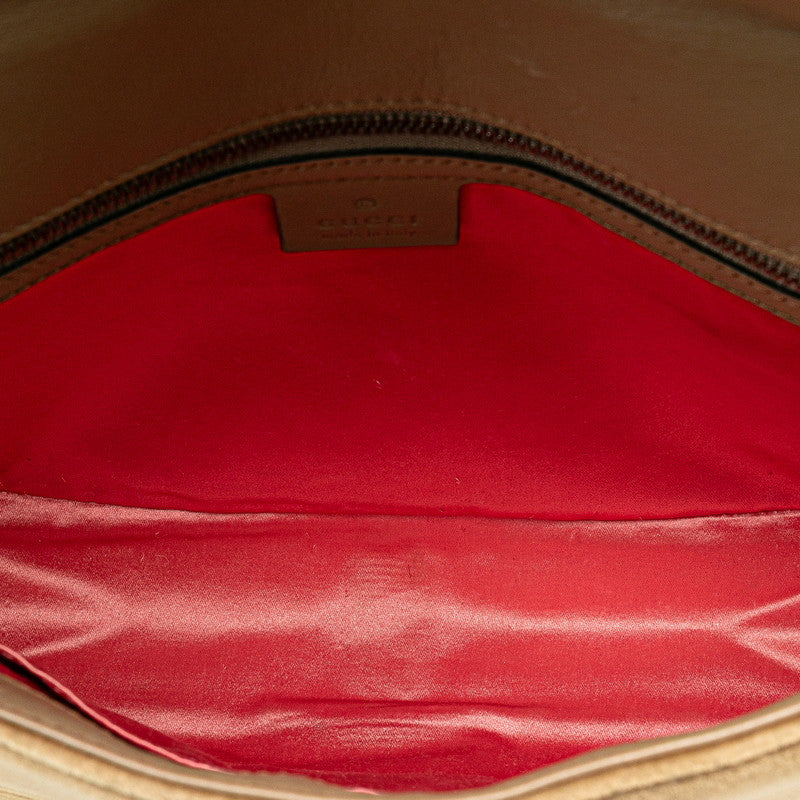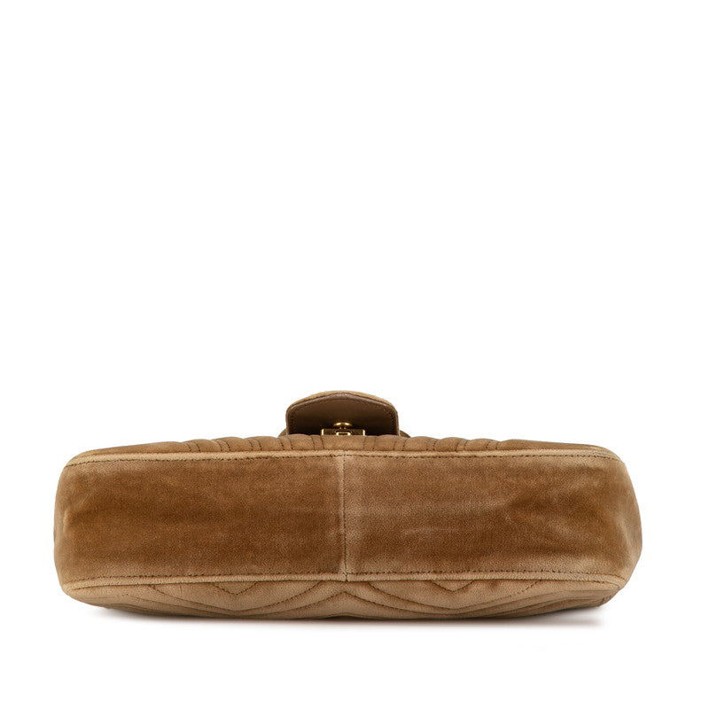 グッチ GGマーモント キルティング チェーン ショルダーバッグ 443496 ベージュ ブラウン ベロア レザー レディース GUCCI 【中古】