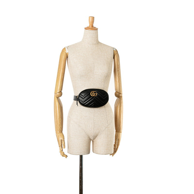 グッチ GGマーモント キルティング ボディバッグ ウエストバッグ 75/30 476434 ブラック レザー レディース GUCCI 【中古】