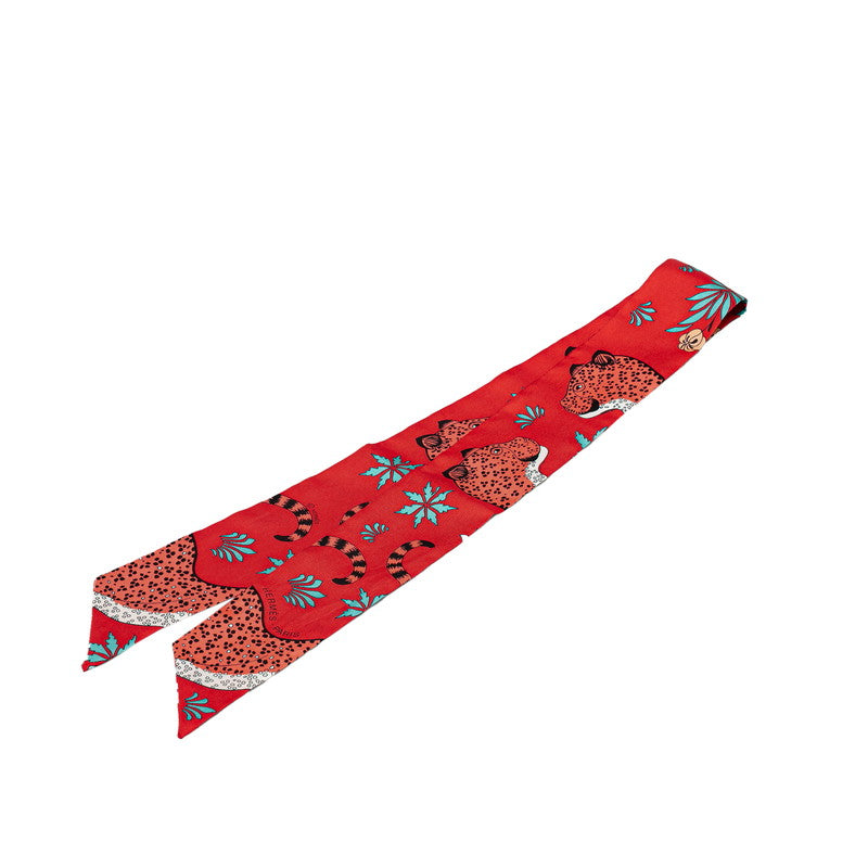 エルメス ツイリー LES LEOPARDS レオパード スカーフ レッド マルチカラー シルク レディース HERMES 【中古】