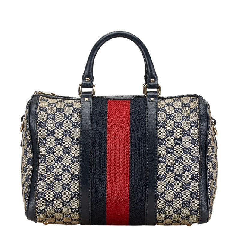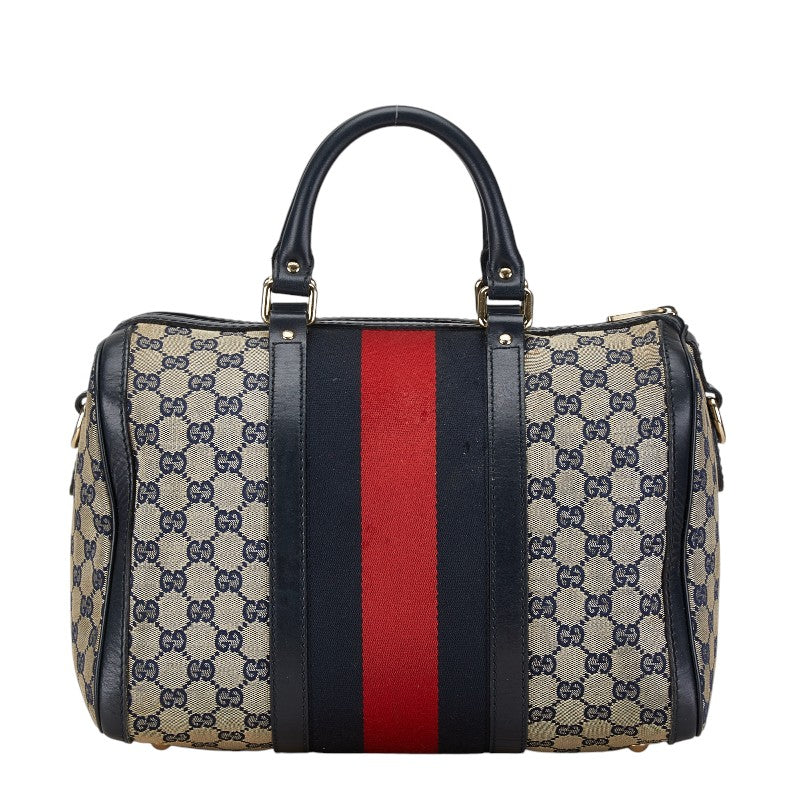 グッチ GGキャンバス シェリーライン ボストンバッグ ショルダーバッグ 2WAY 247205 ネイビー キャンバス レザー レディース GUCCI 【中古】
