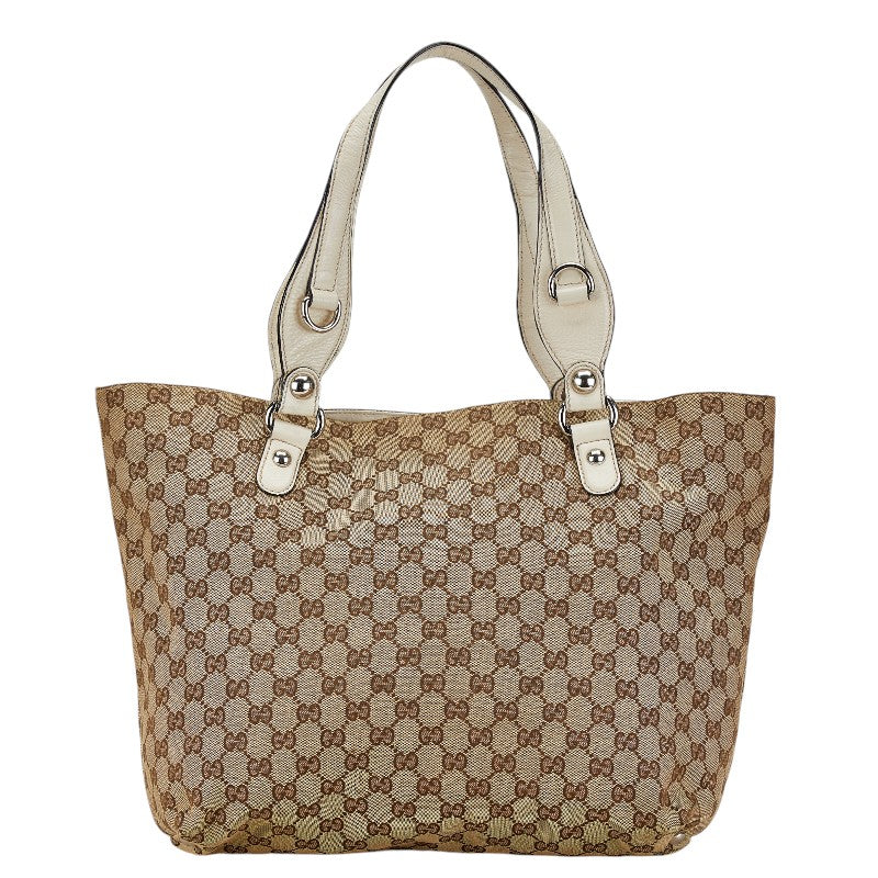 グッチ GGキャンバス ホースビット トートバッグ 229852 ベージュ ホワイト キャンバス レザー レディース GUCCI 【中古】