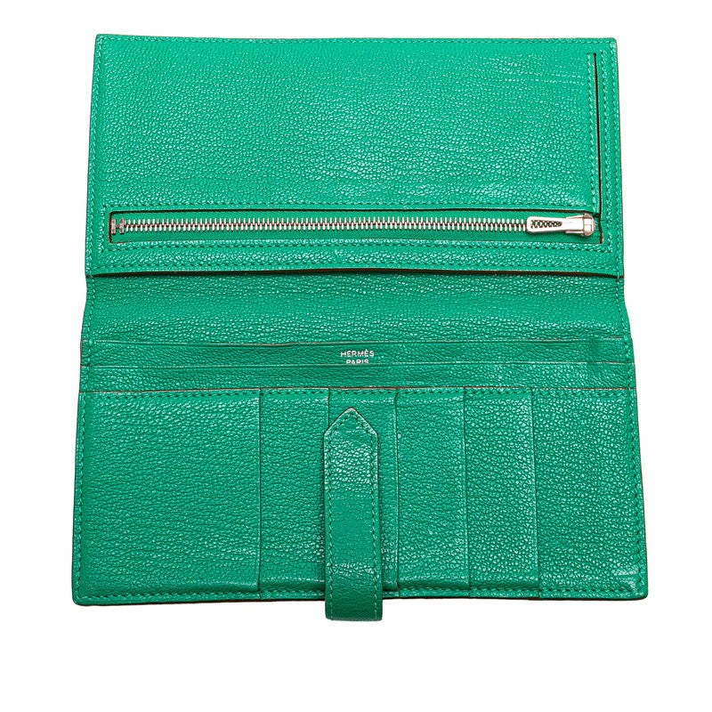 エルメス ベアンスフレ P金具 長財布 グリーン シェーブル レディース HERMES 【中古】