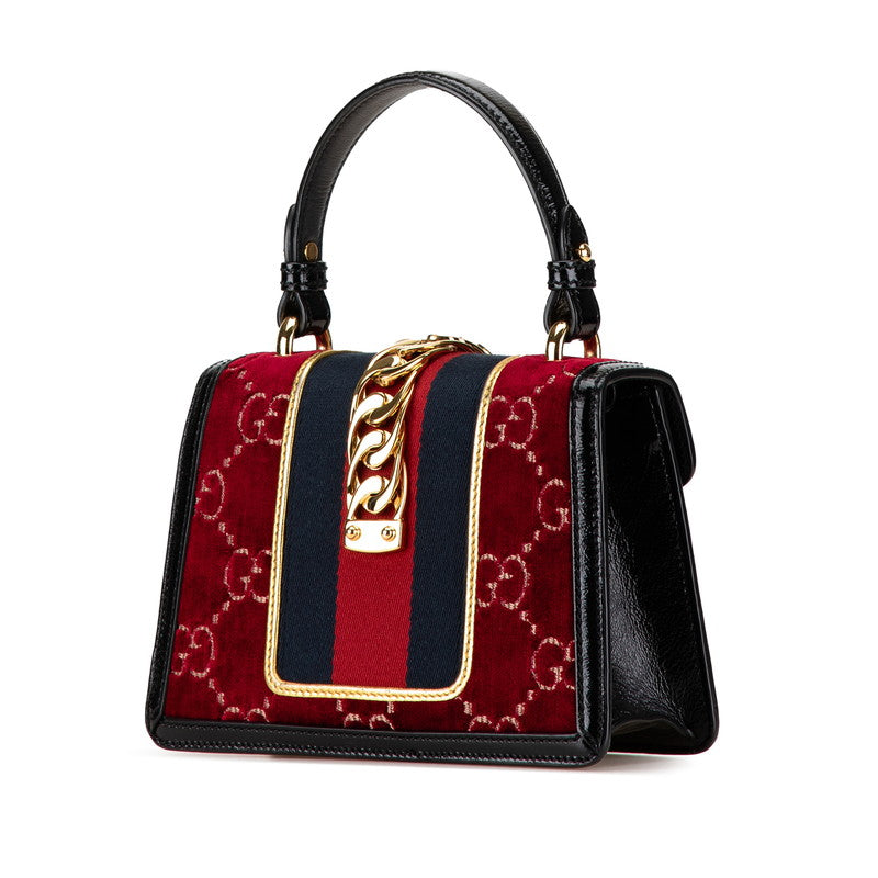 グッチ GG シルヴィ シェリーライン ハンドバッグ ショルダーバッグ 2WAY 470270 ワインレッド ブラック ベロア レザー レディース GUCCI 【中古】