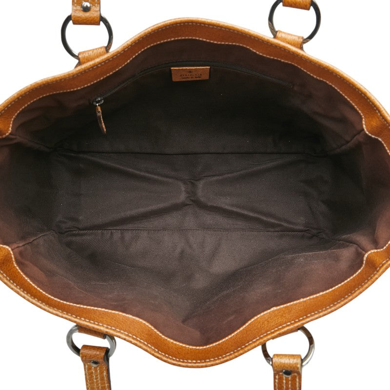 グッチ GGキャンバス ハンドバッグ トートバッグ 113017 ライトブラウン キャンバス レザー レディース GUCCI 【中古】