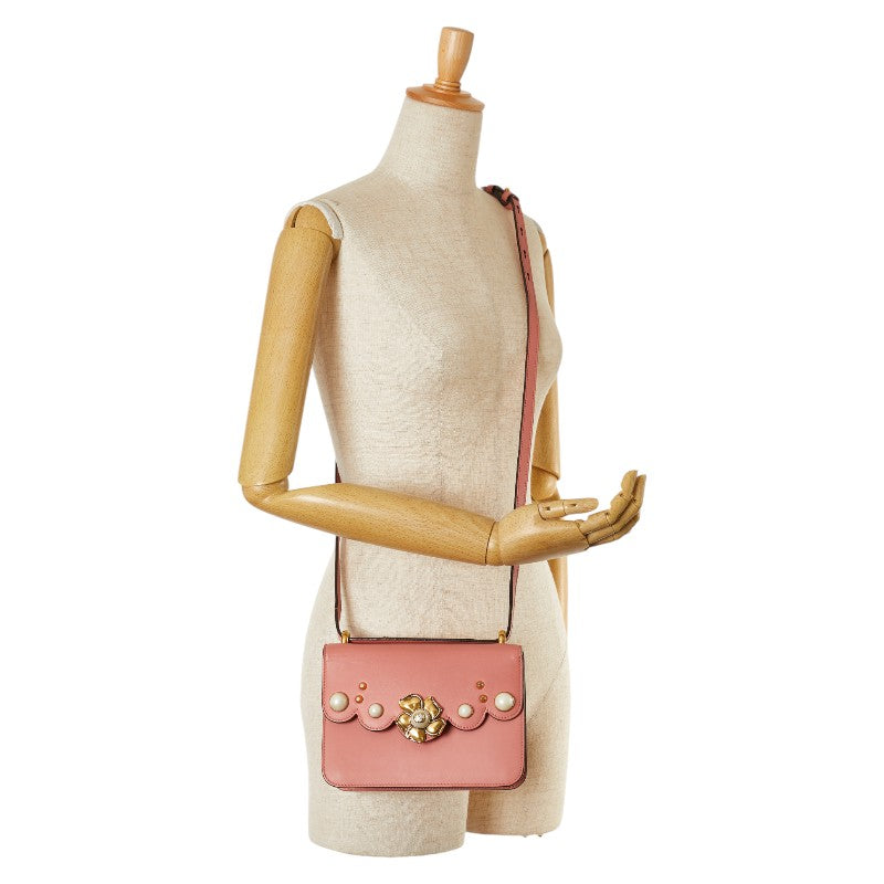 グッチ フェイクパール スタッズ 斜め掛け ショルダーバッグ 432682 ピンク レザー レディース GUCCI 【中古】