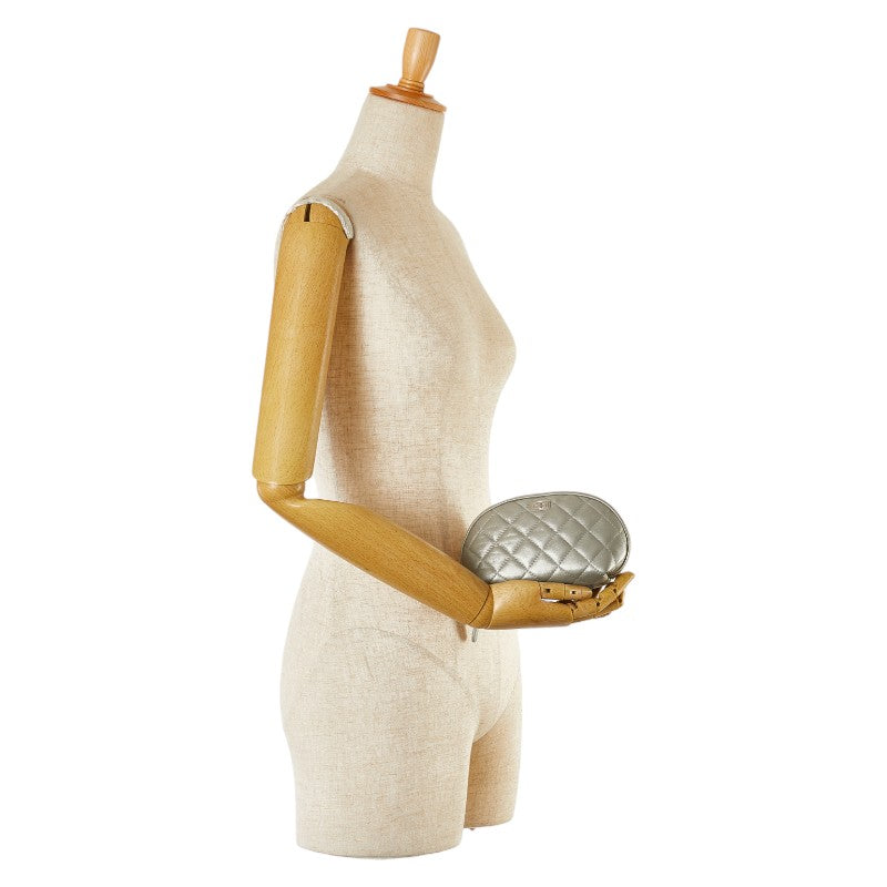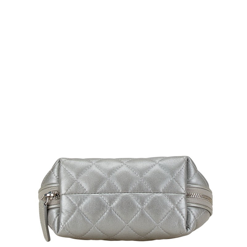 シャネル ココマーク ポーチ コスメポーチ 小物入れ シルバー ラムスキン レディース CHANEL 【中古】