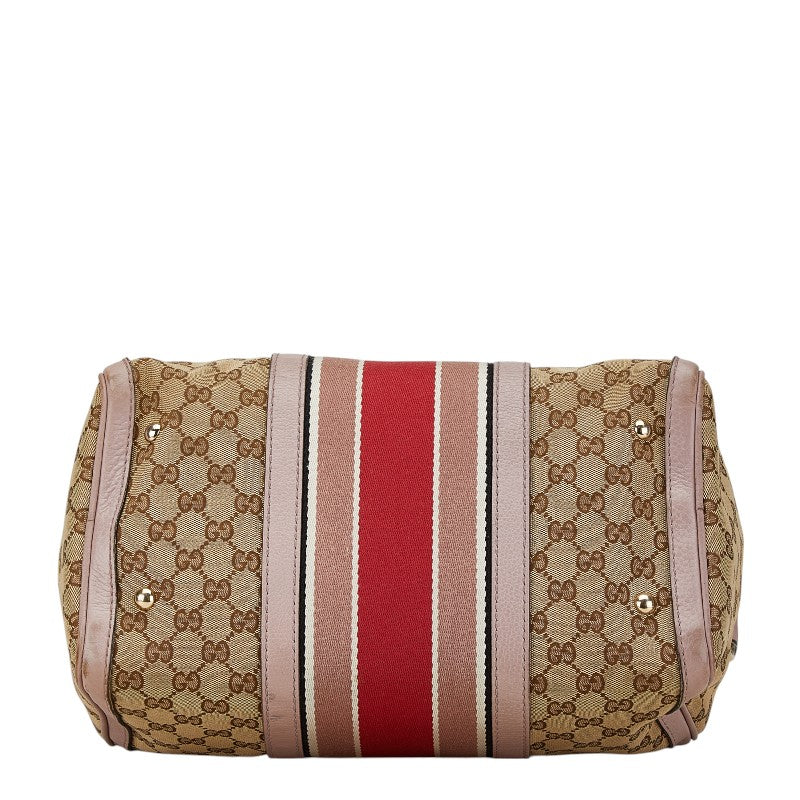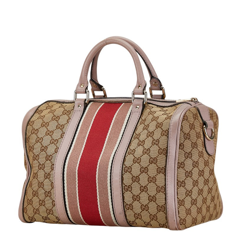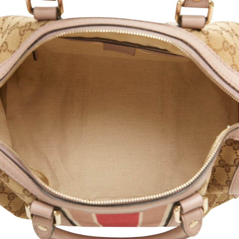 グッチ GGキャンバス シェリーライン ミニボストンバッグ ショルダーバッグ 2WAY 247205 ベージュ ピンク キャンバス レザー レディース GUCCI 【中古】