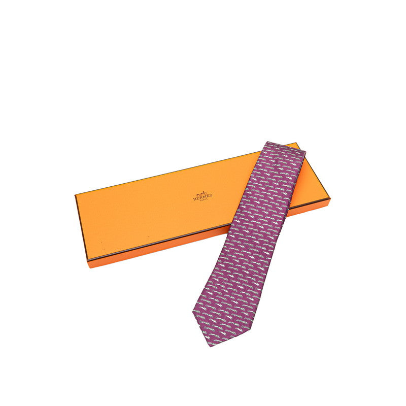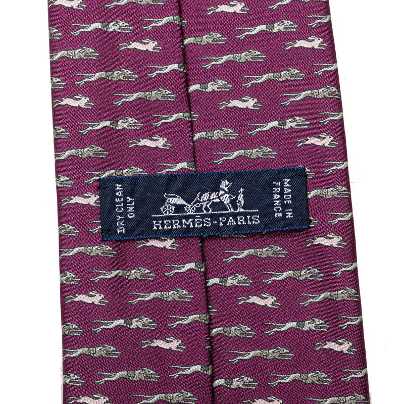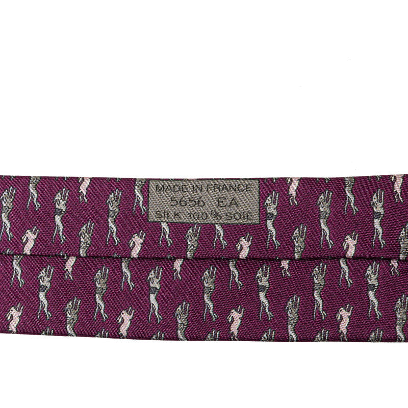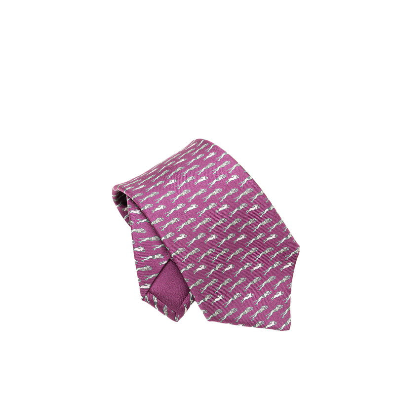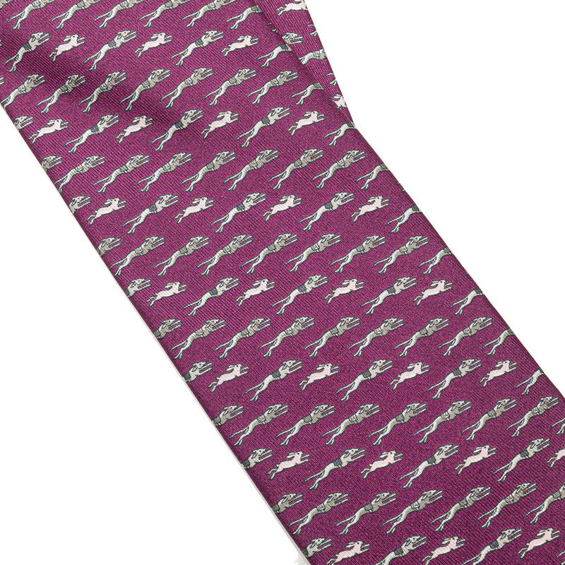 エルメス 犬 ウサギ ラビット 兎 ネクタイ パープル シルク レディース HERMES 【中古】
