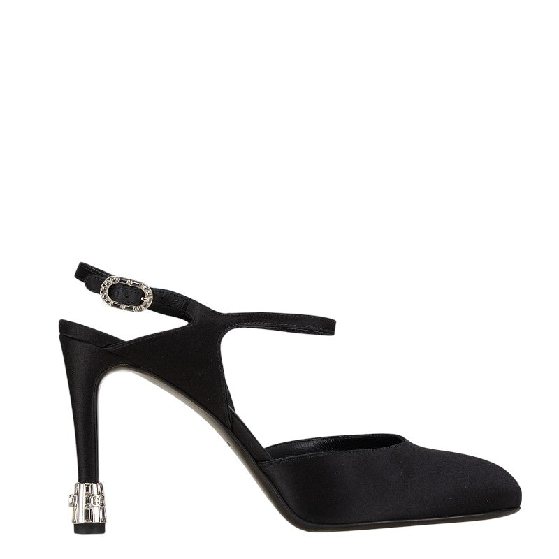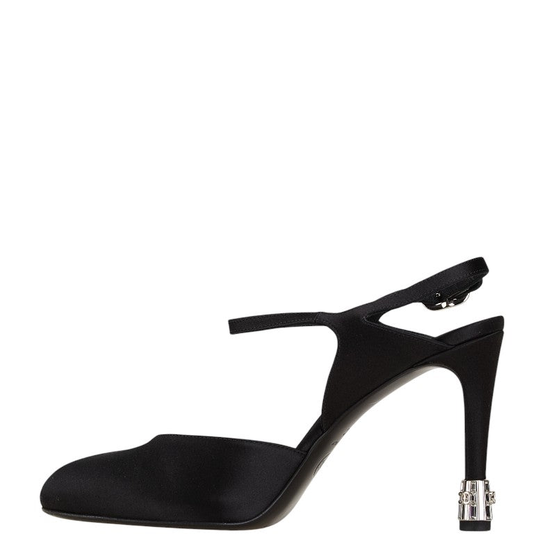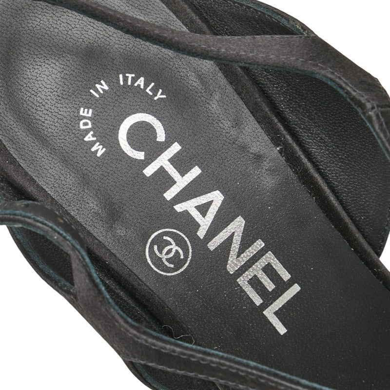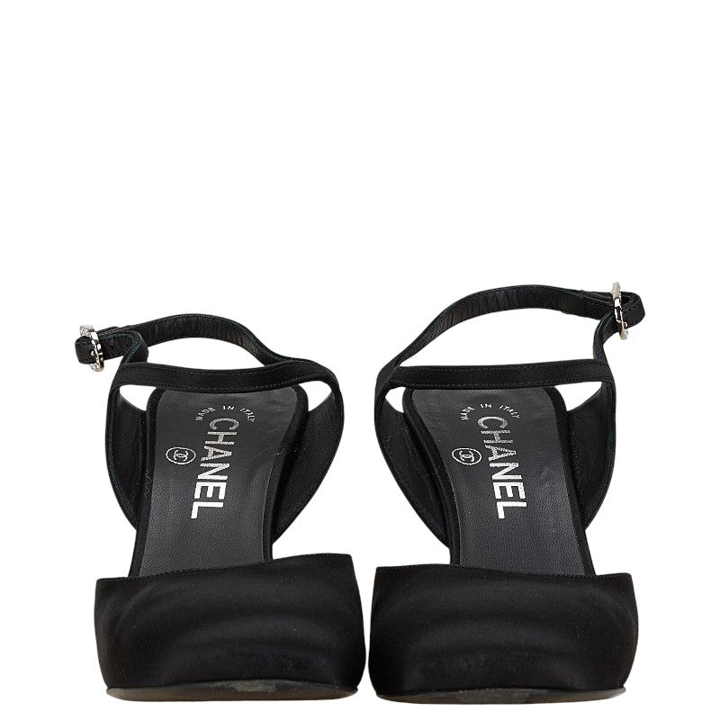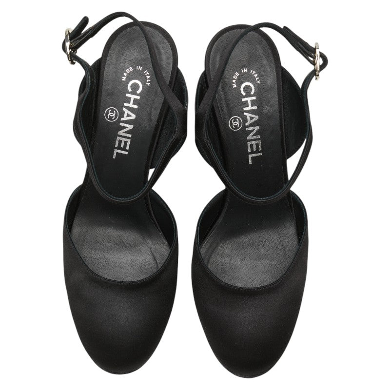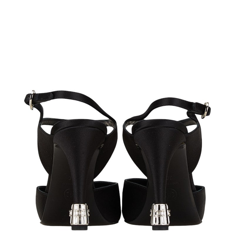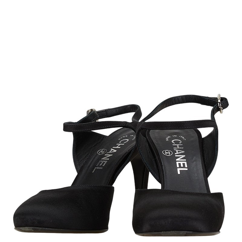 シャネル ココマーク ラインストーン ストラップ パンプス ハイヒール サイズ:38 ブラック サテン レザー レディース CHANEL 【中古】