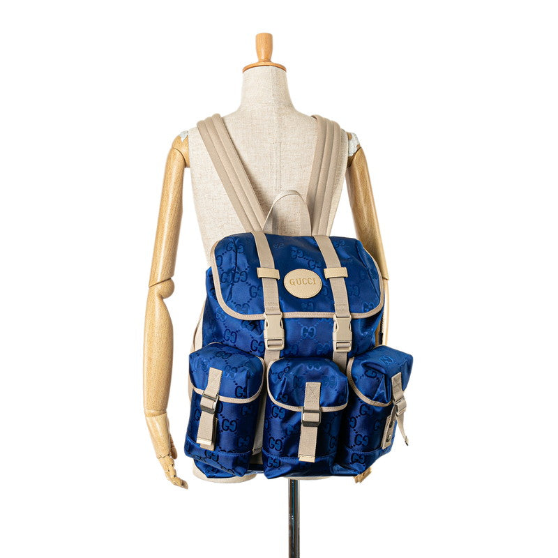 グッチ GGナイロン オフ ザ グリッド 日本限定カラー リュック バックパック 626160 ブルー ベージュ ナイロン レザー レディース GUCCI 【中古】