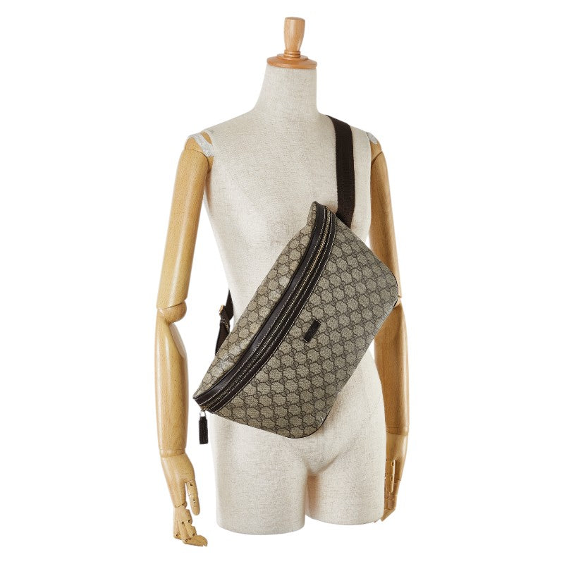 グッチ GGスプリーム ウエストバッグ ボディバッグ カーキ ブラウン PVC レザー レディース GUCCI 【中古】