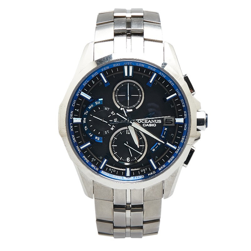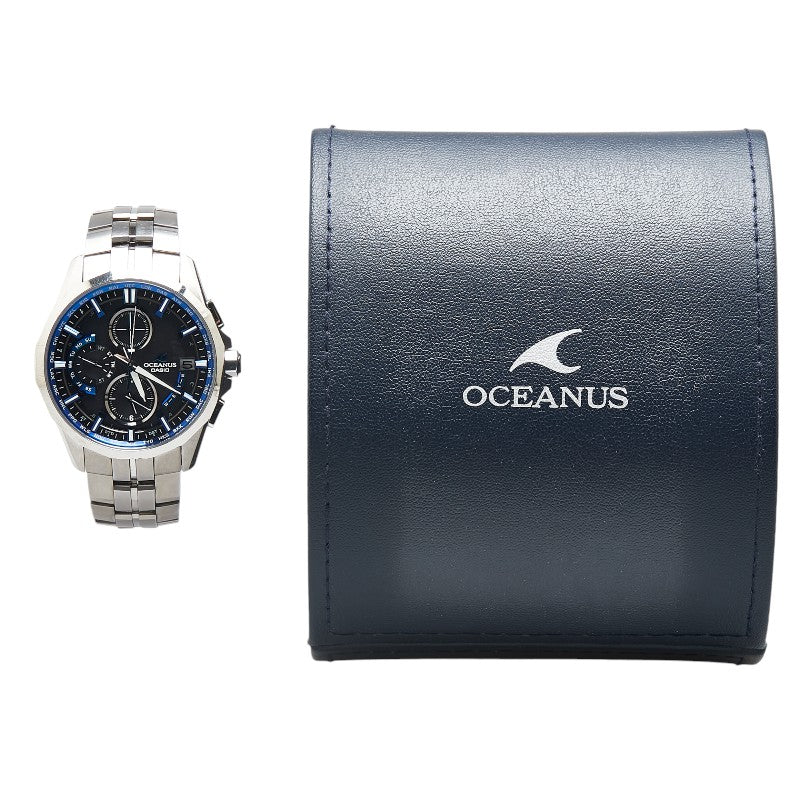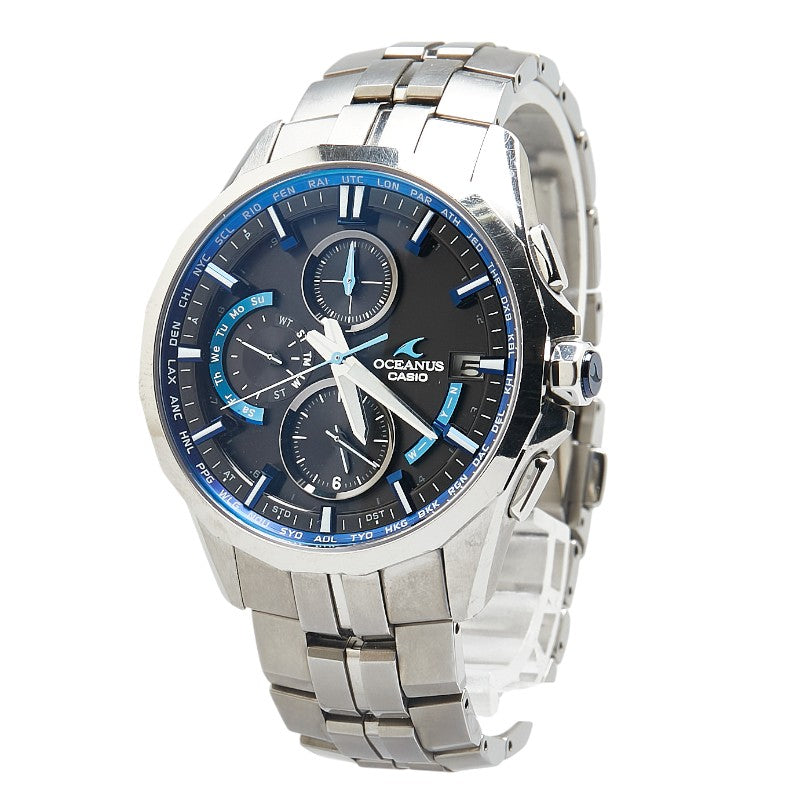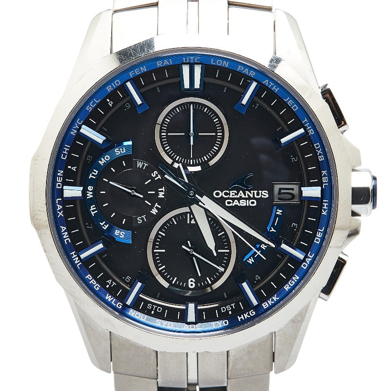 カシオ オシアナス マンタ デイデイト ソーラー電波 腕時計 OCW-S3000-1AJF クオーツ ブラック文字盤 チタン メンズ CASIO 【中古】