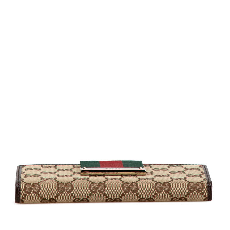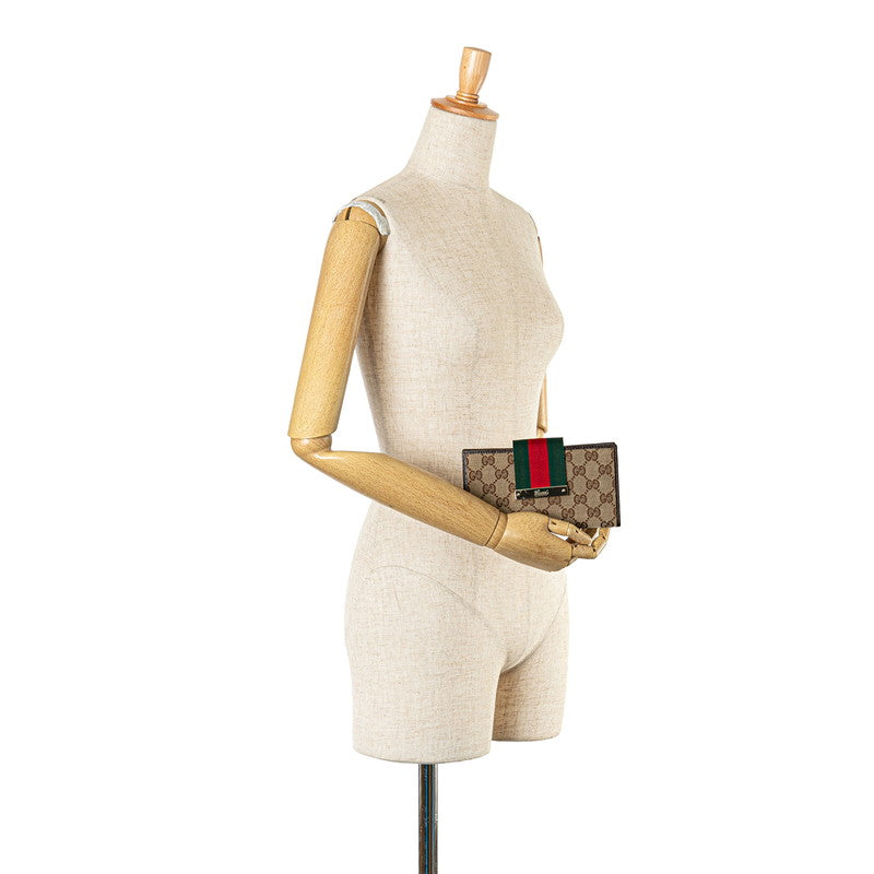 グッチ GGキャンバス シェリーライン 長財布 181668 ベージュ ブラウン キャンバス レザー レディース GUCCI 【中古】