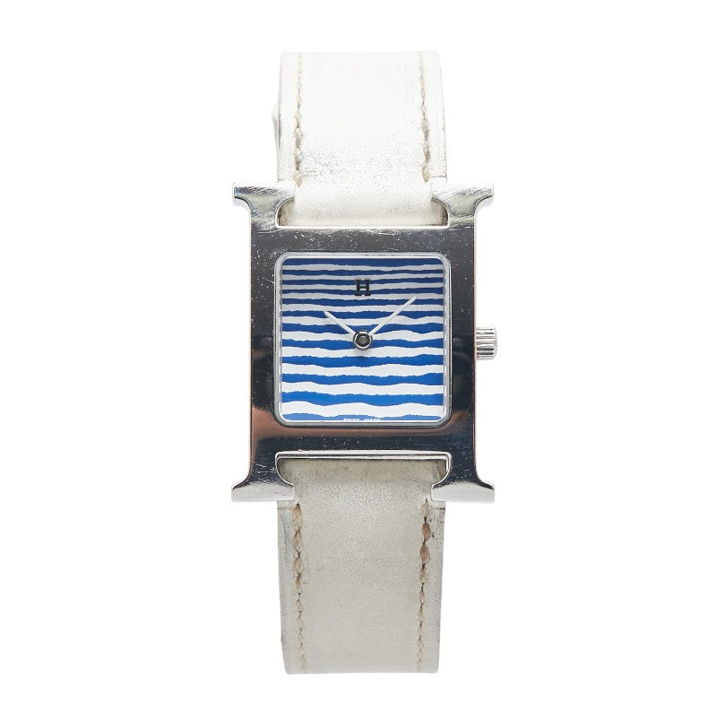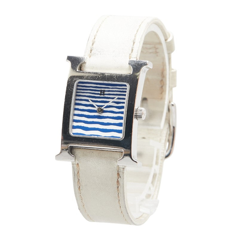 エルメス Hウォッチ ゼブラ柄 腕時計 HH1.210 クオーツ ブルー ホワイト文字盤 ステンレススチール レザー レディース HERMES 【中古】