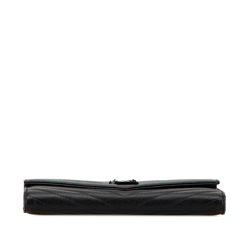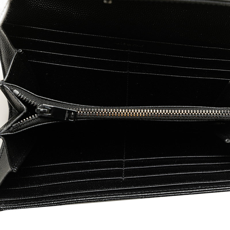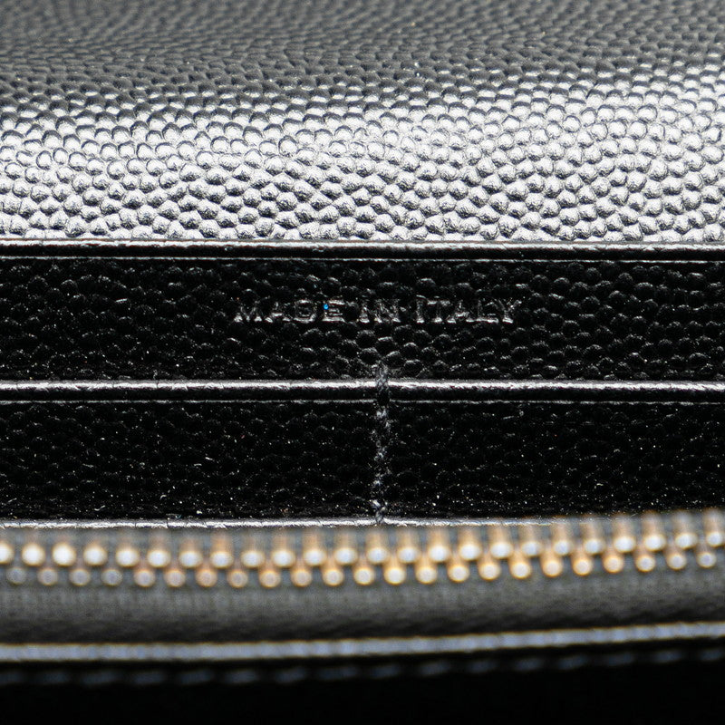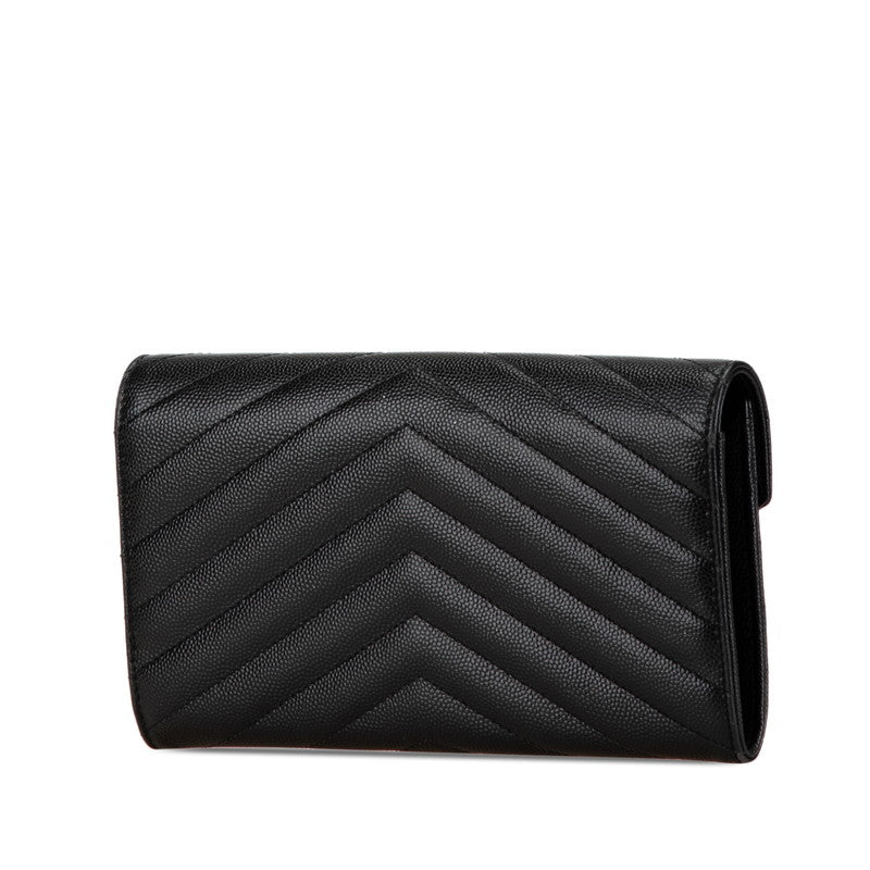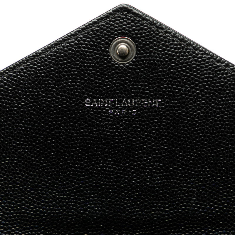 サンローラン Vステッチ YSLロゴ 二つ折り財布 ブラック レザー レディース SAINT LAURENT 【中古】