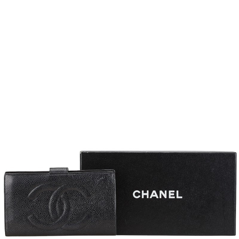 シャネル ココマーク がま口 長財布 ブラック キャビアスキン レディース CHANEL 【中古】