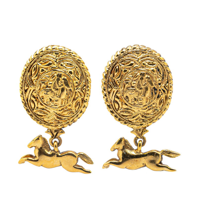 シャネル ココマーク ホース 馬 モチーフ イヤリング ゴールド メッキ レディース CHANEL 【中古】