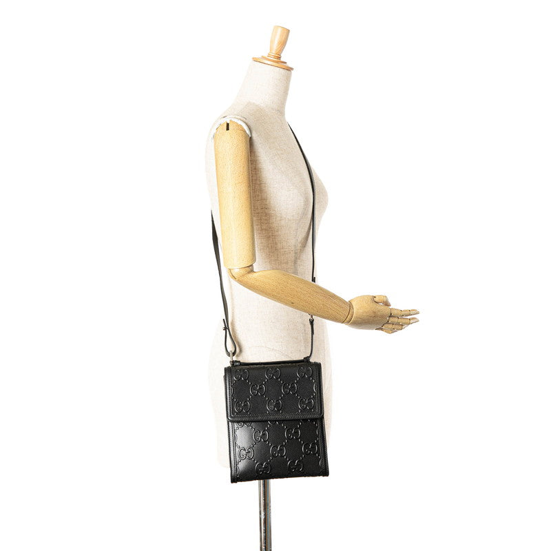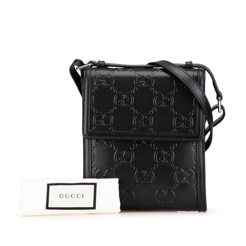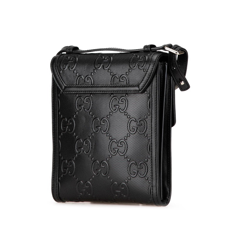 グッチ GGエンボス メッセンジャーバッグ ショルダーバッグ 625782 ブラック PVC レザー レディース GUCCI 【中古】